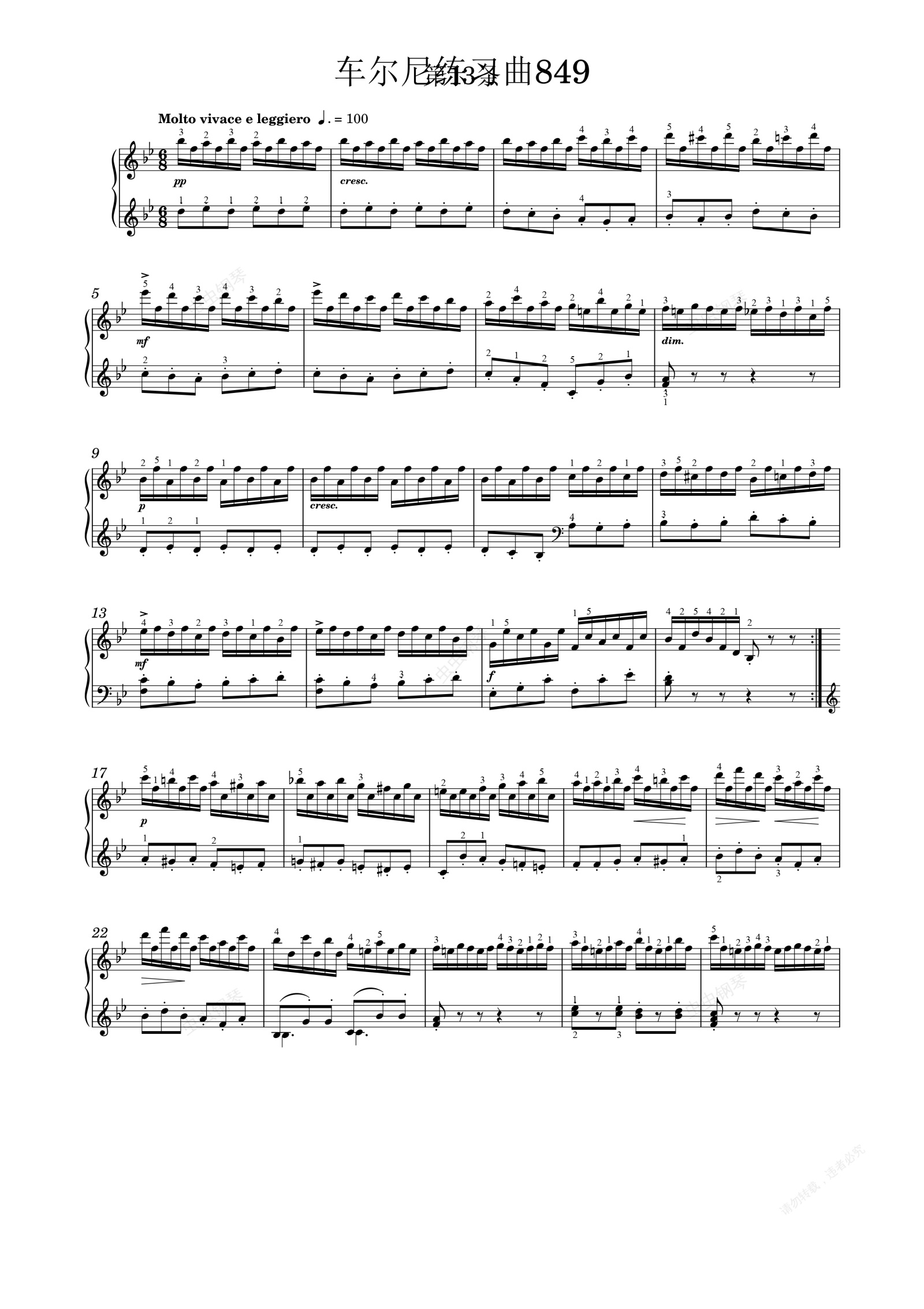 钢琴谱:车尔尼849第 (13)