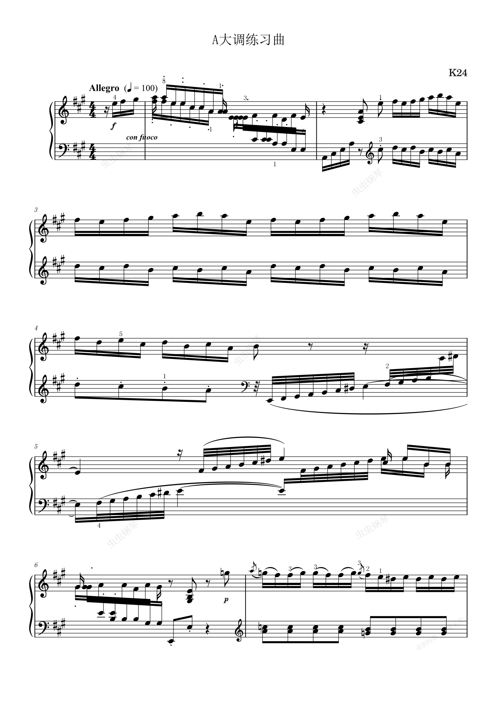 钢琴谱:第20首A大调练习曲