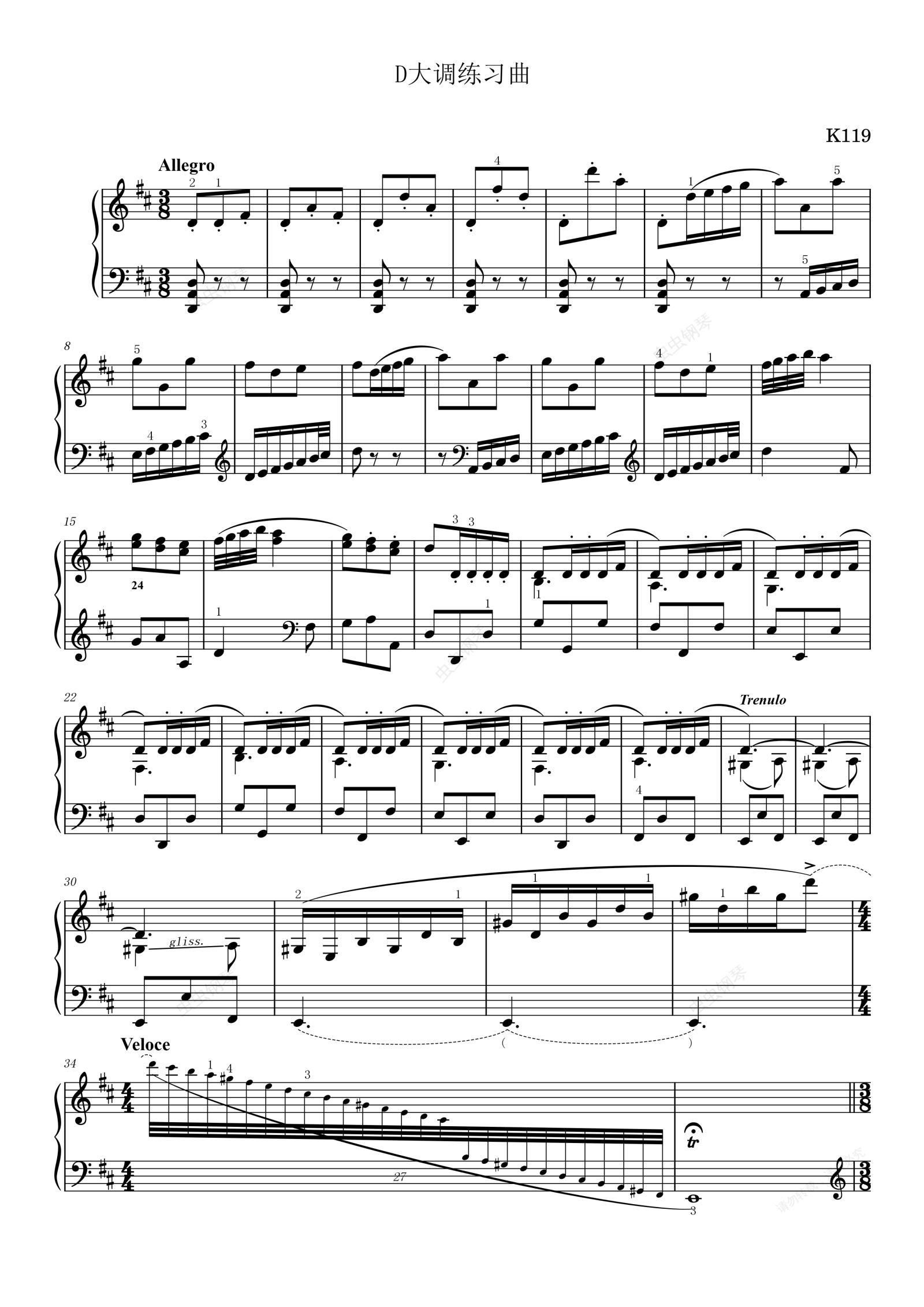 钢琴谱:第11首D大调练习曲