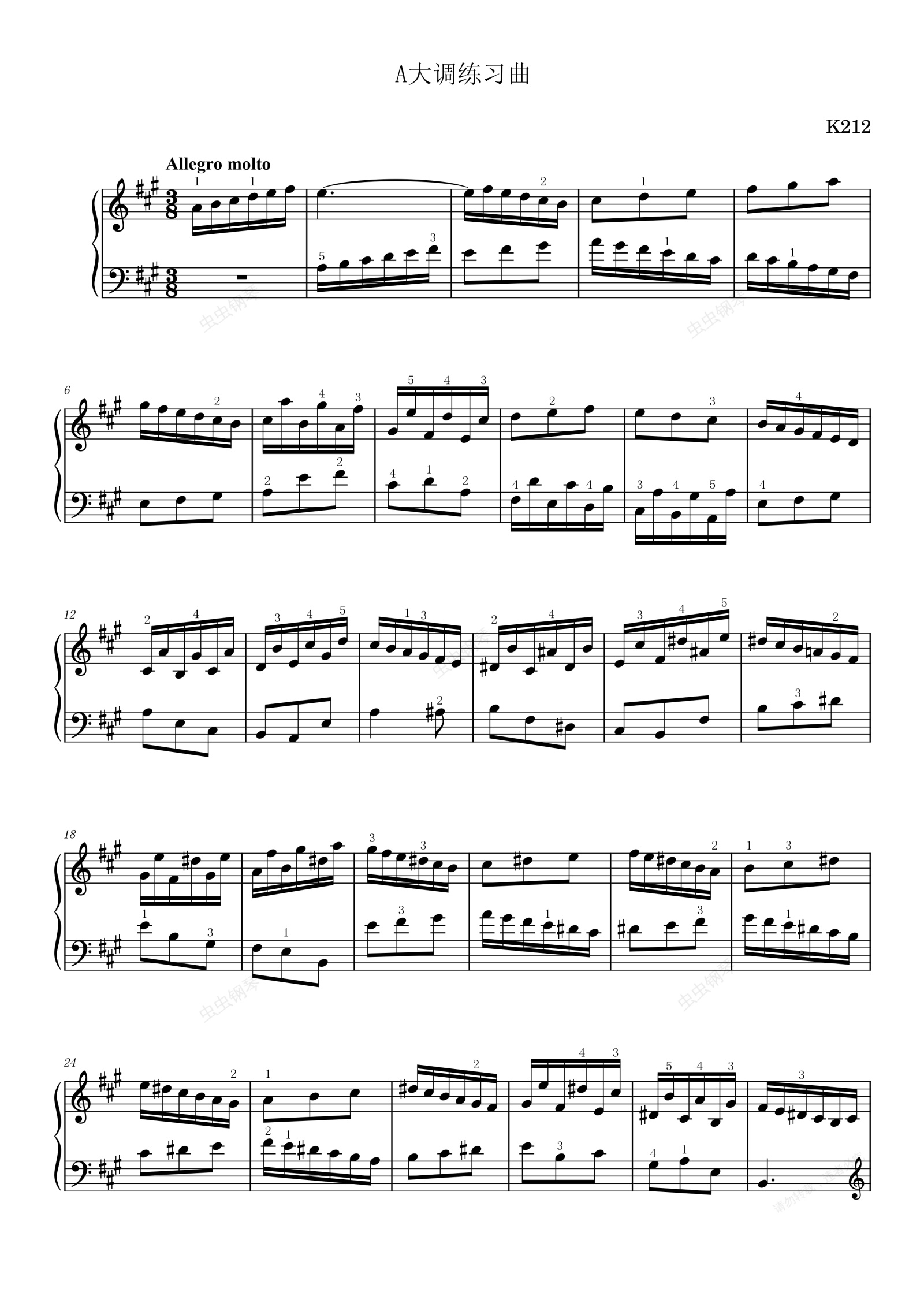 钢琴谱:第9首A大调练习曲