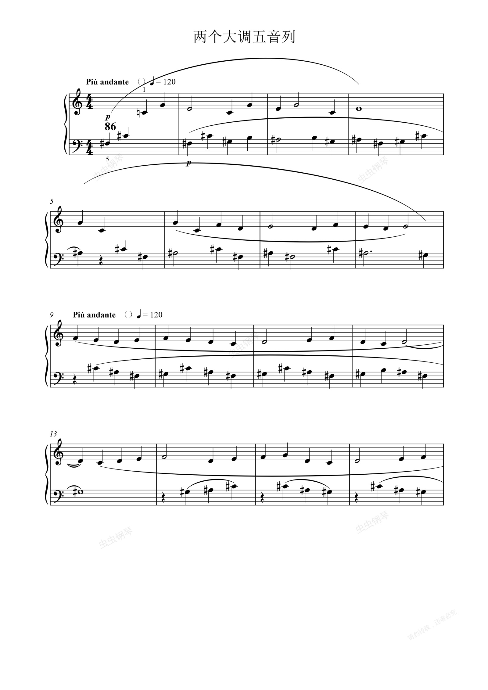 钢琴谱:两个大调五音列