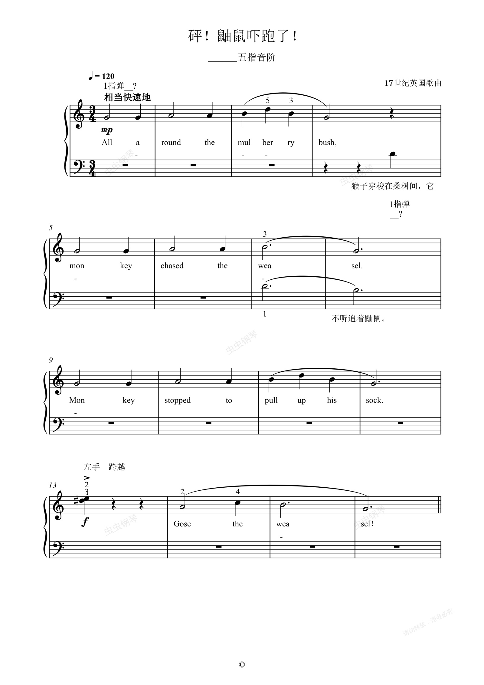 钢琴谱:单元十 砰!鼬鼠吓跑了!
