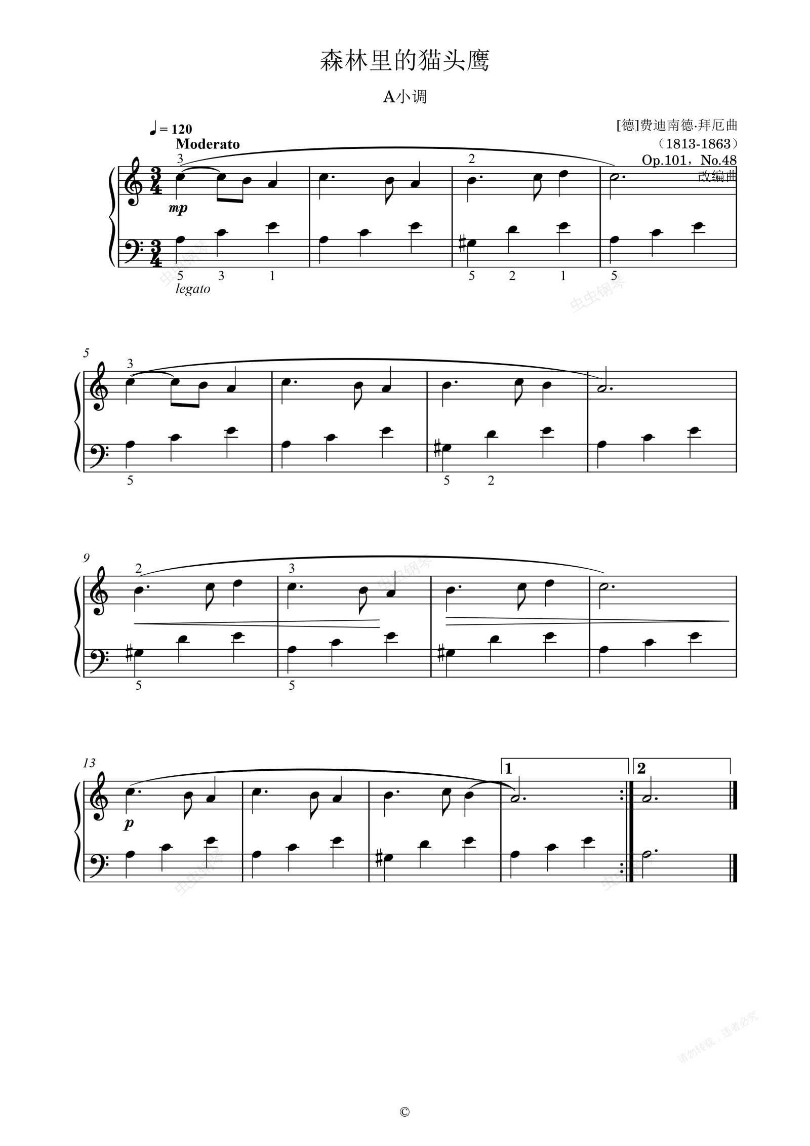 钢琴谱:单元八 森林里的猫头鹰