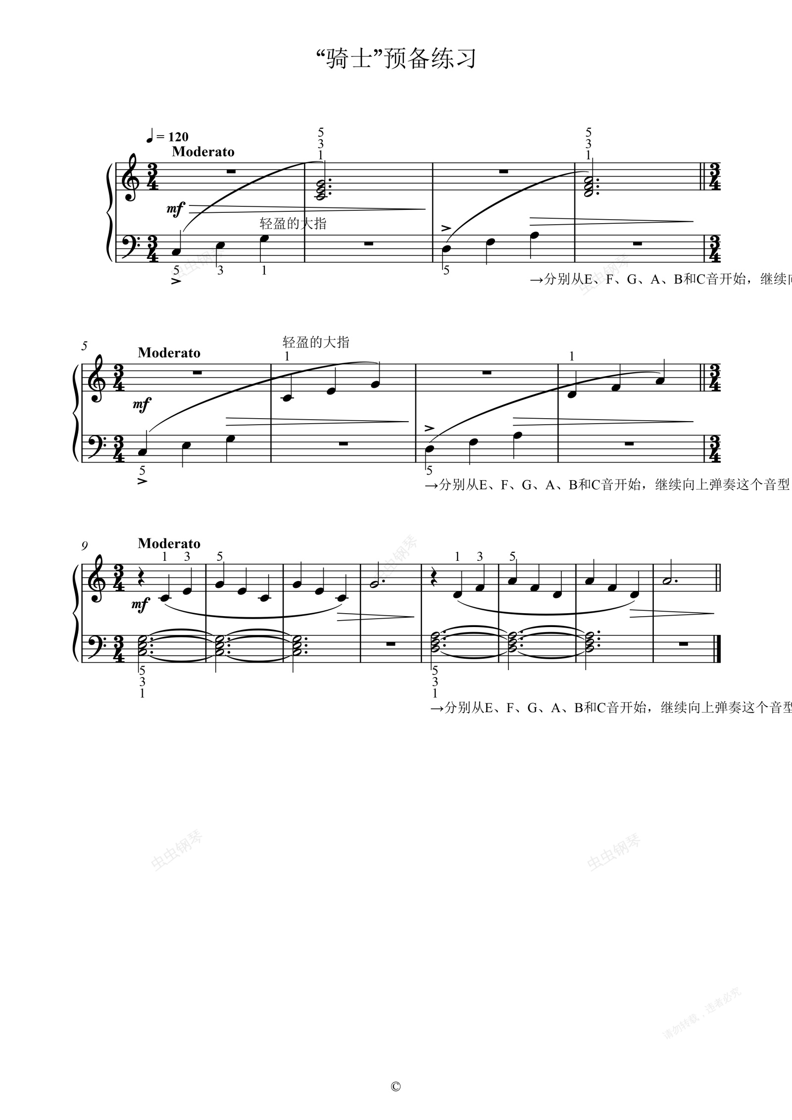 钢琴谱:单元二 “骑士”预备练习