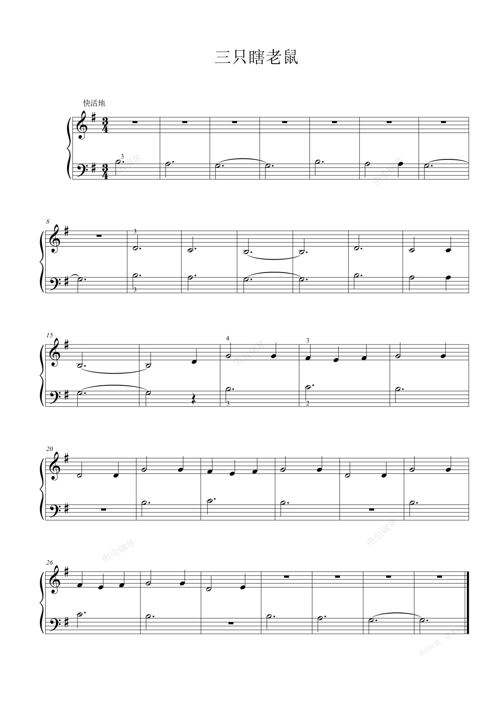 钢琴谱:三只盲眼小老鼠