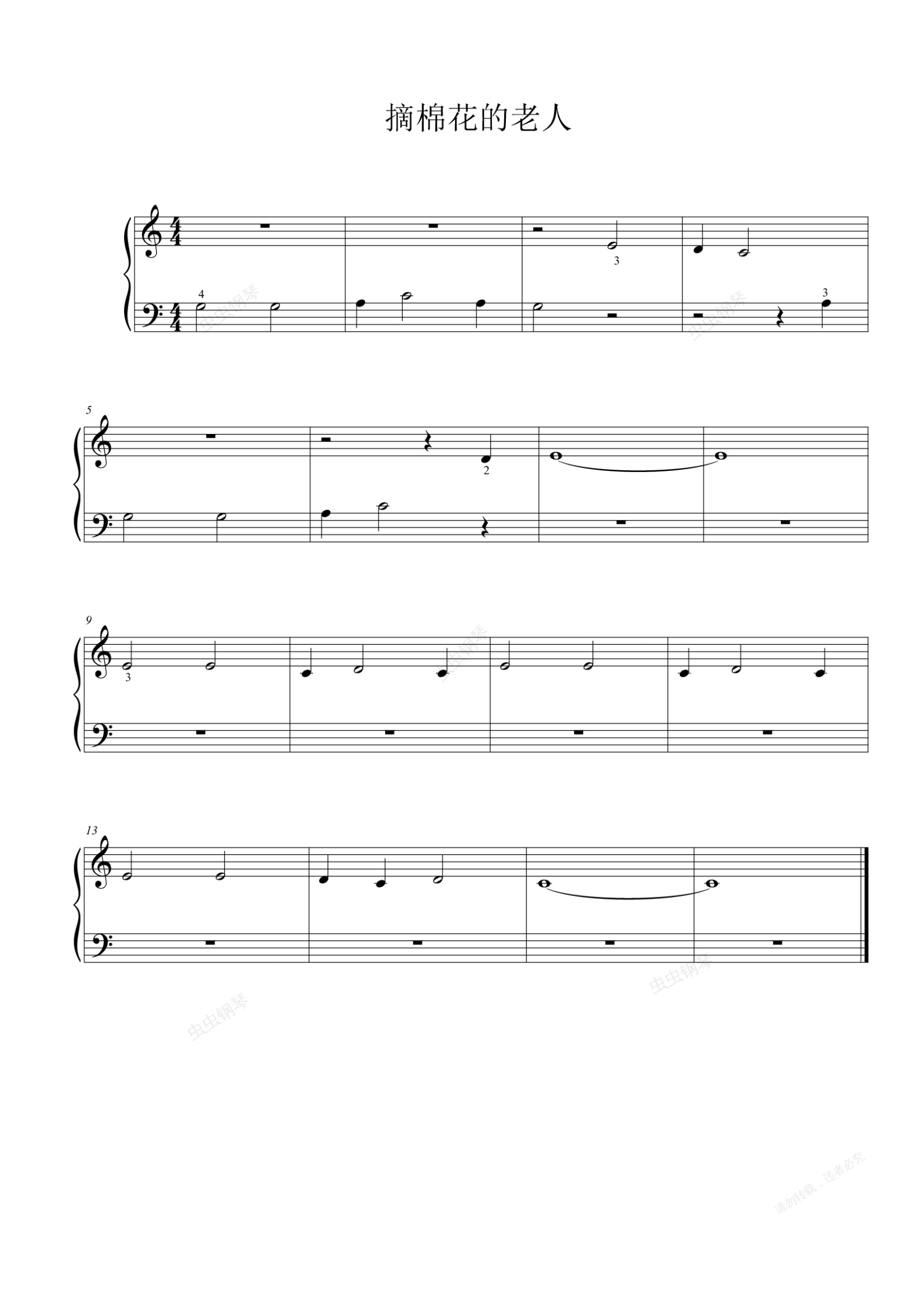 钢琴谱:摘棉花的老人