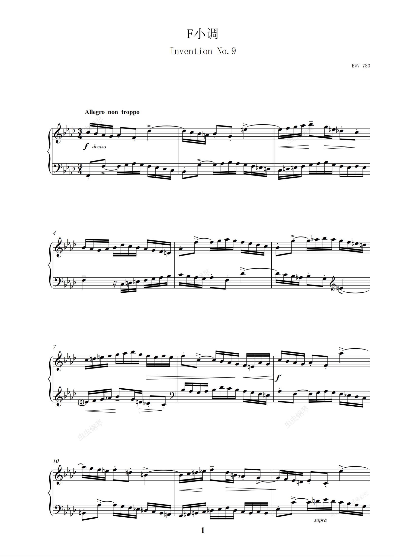 钢琴谱:二部创意曲No.9