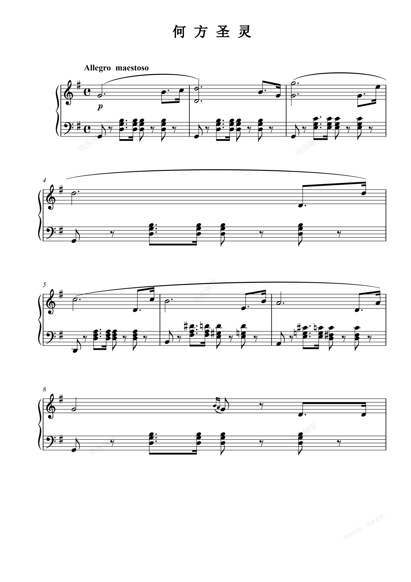钢琴谱:何方神圣(选自《圣母悼歌》)