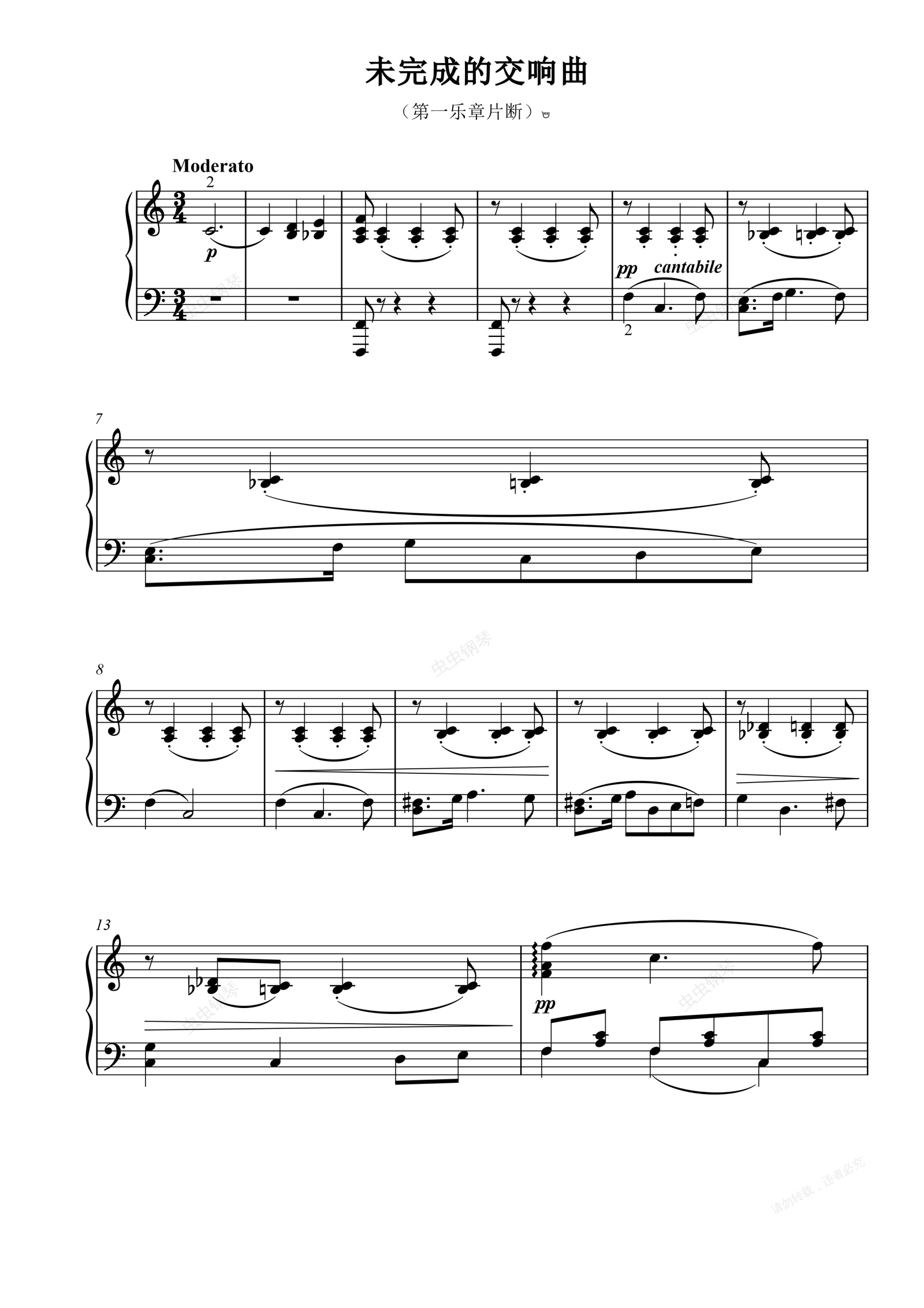 钢琴谱:未完成交响曲(第一乐章片断)