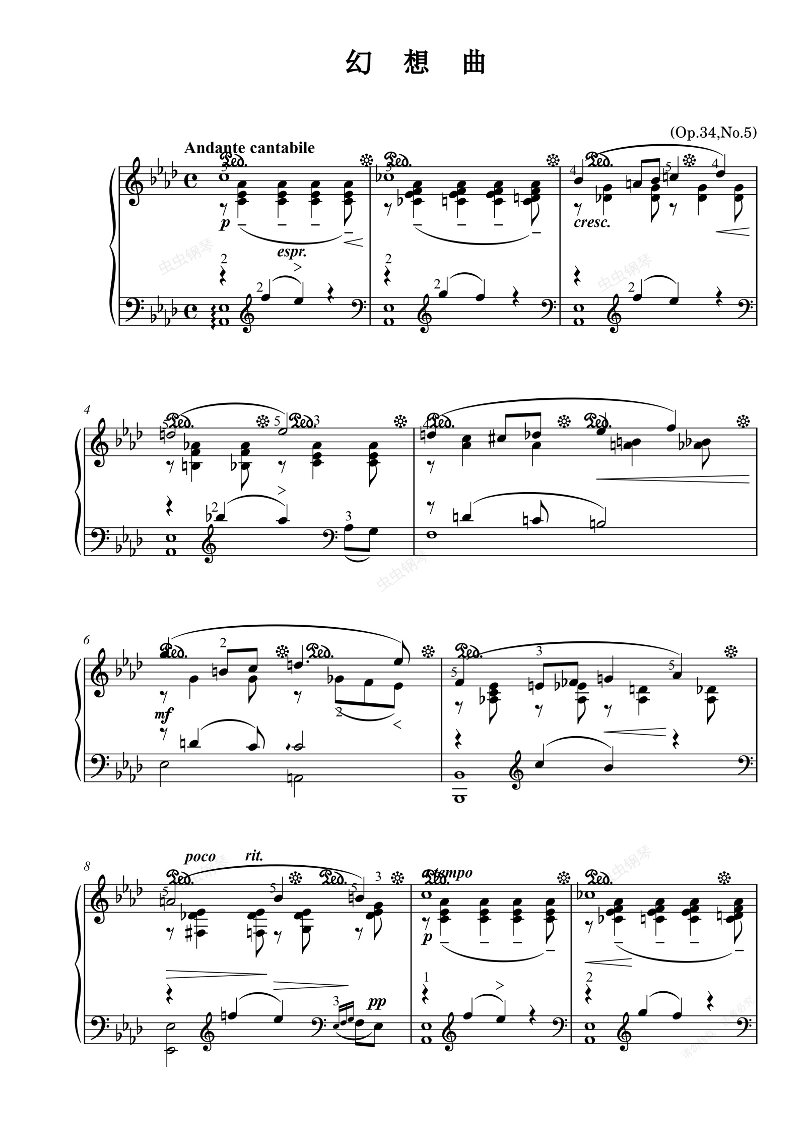 钢琴谱:幻想曲(修特 Op.34,No.5)