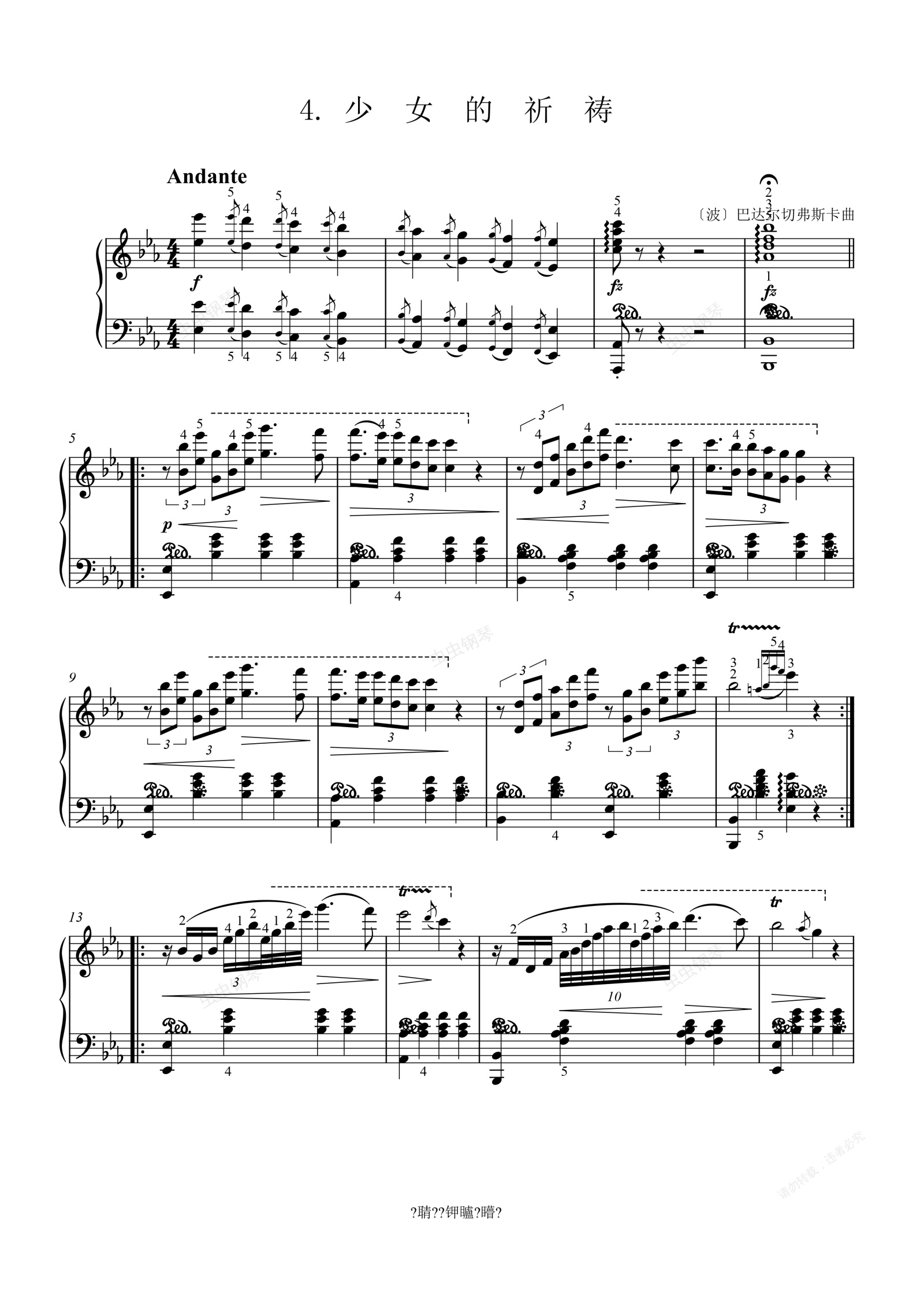 钢琴谱:少女的祈祷