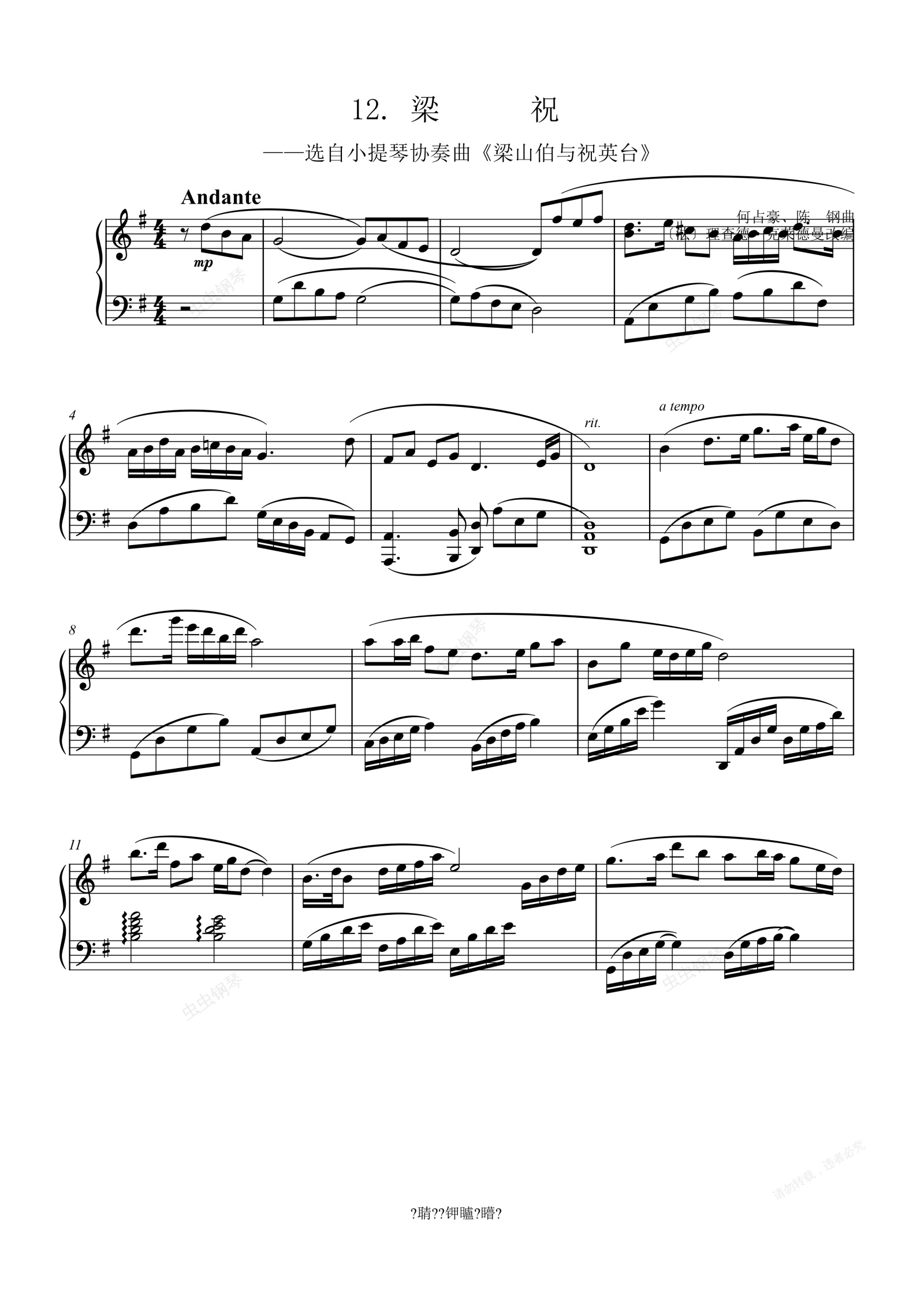 钢琴谱:梁祝——选自小提琴协奏曲《梁山伯与祝英台》