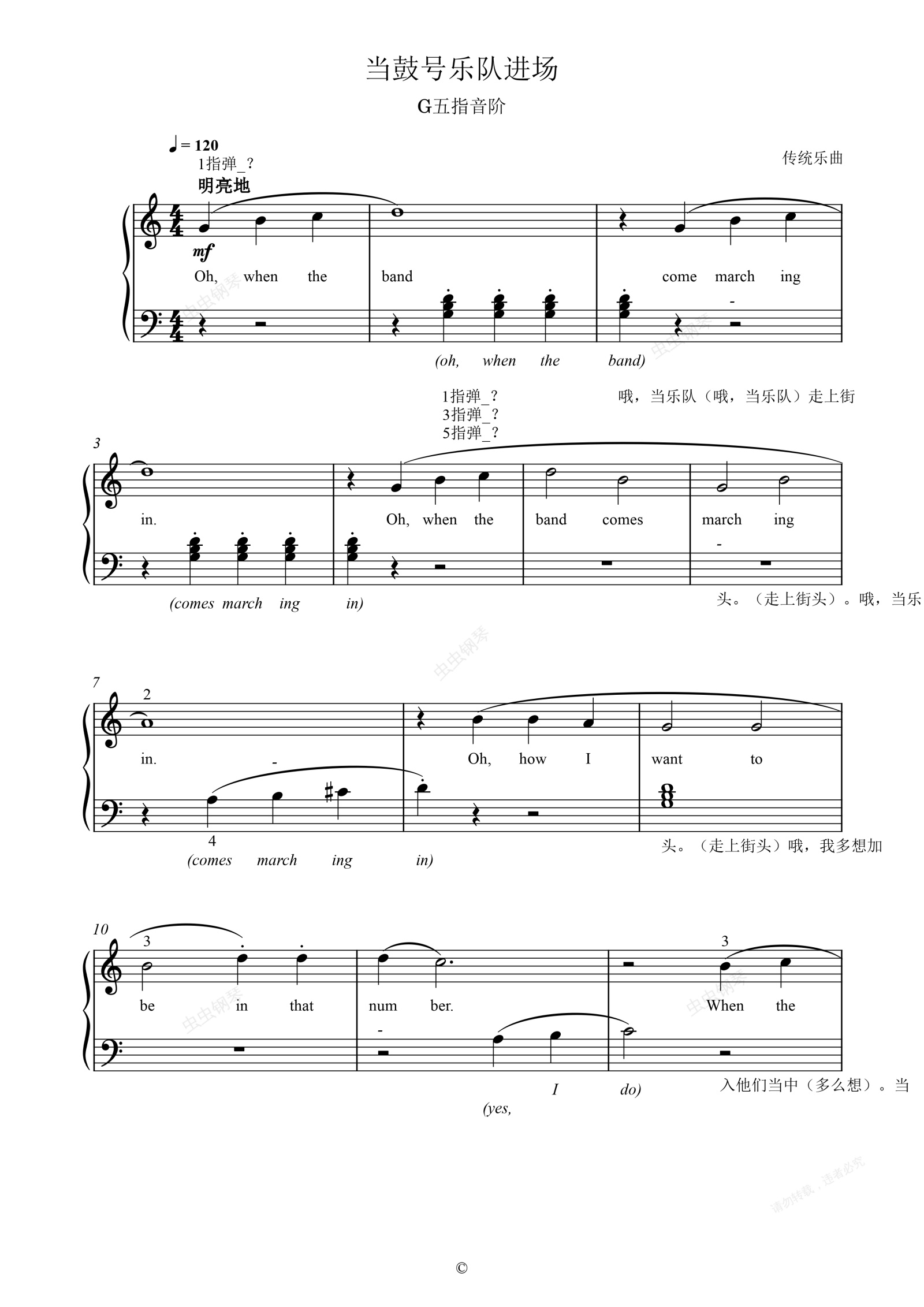 钢琴谱:单元一 当鼓号乐队进场