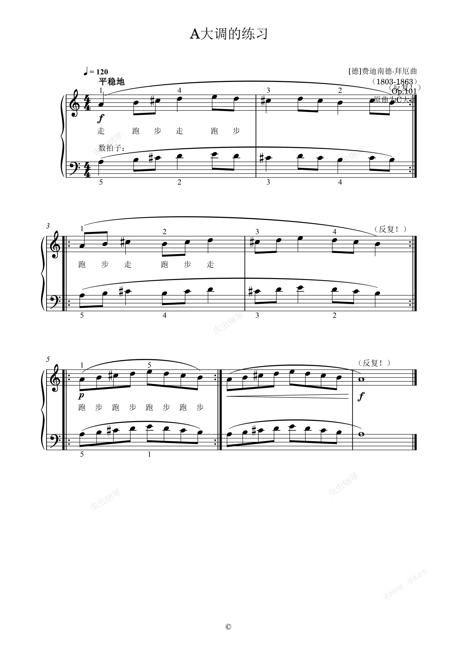 钢琴谱:单元六 A大调的练习