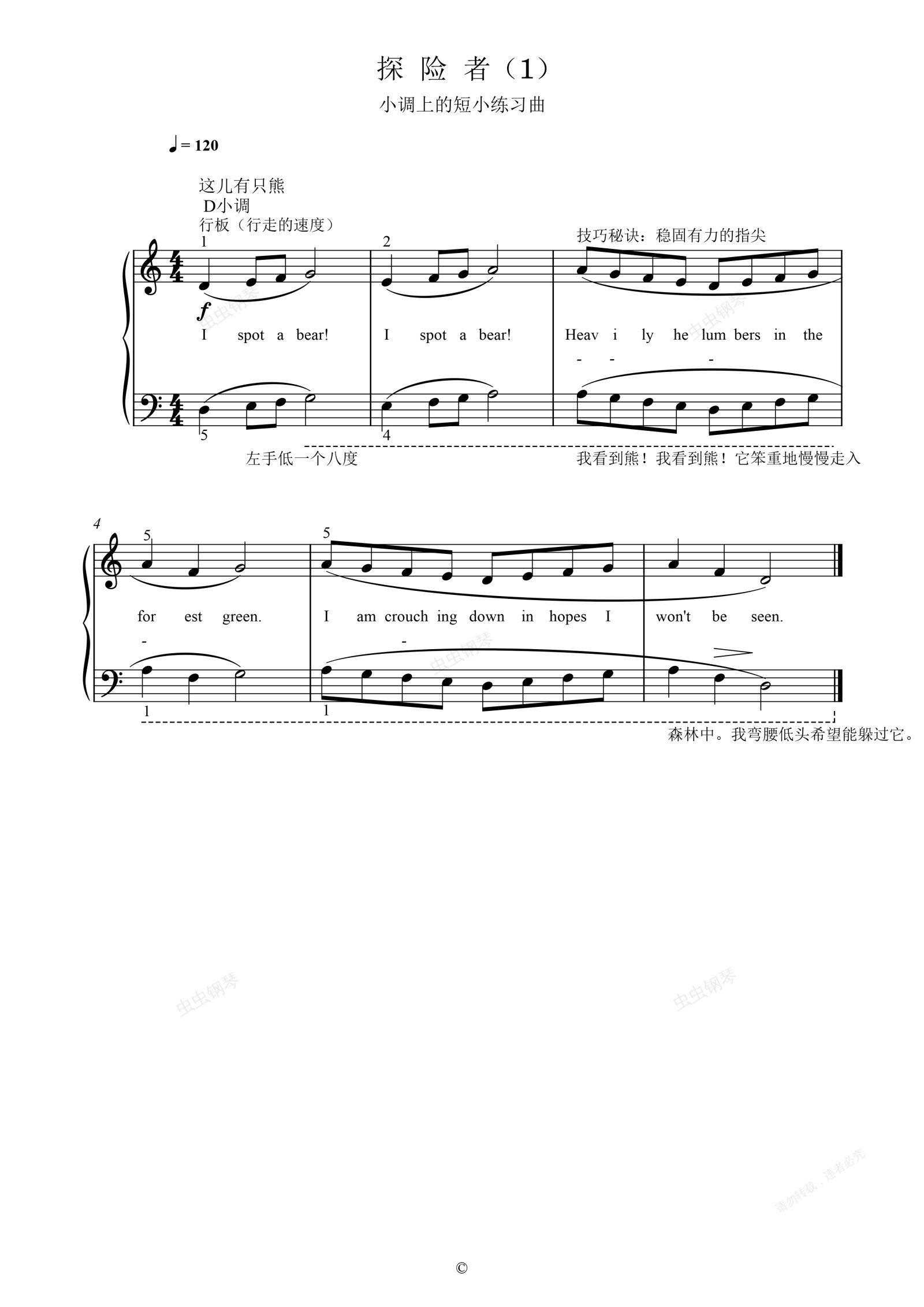 钢琴谱:单元七 探险者(1)这儿有只熊