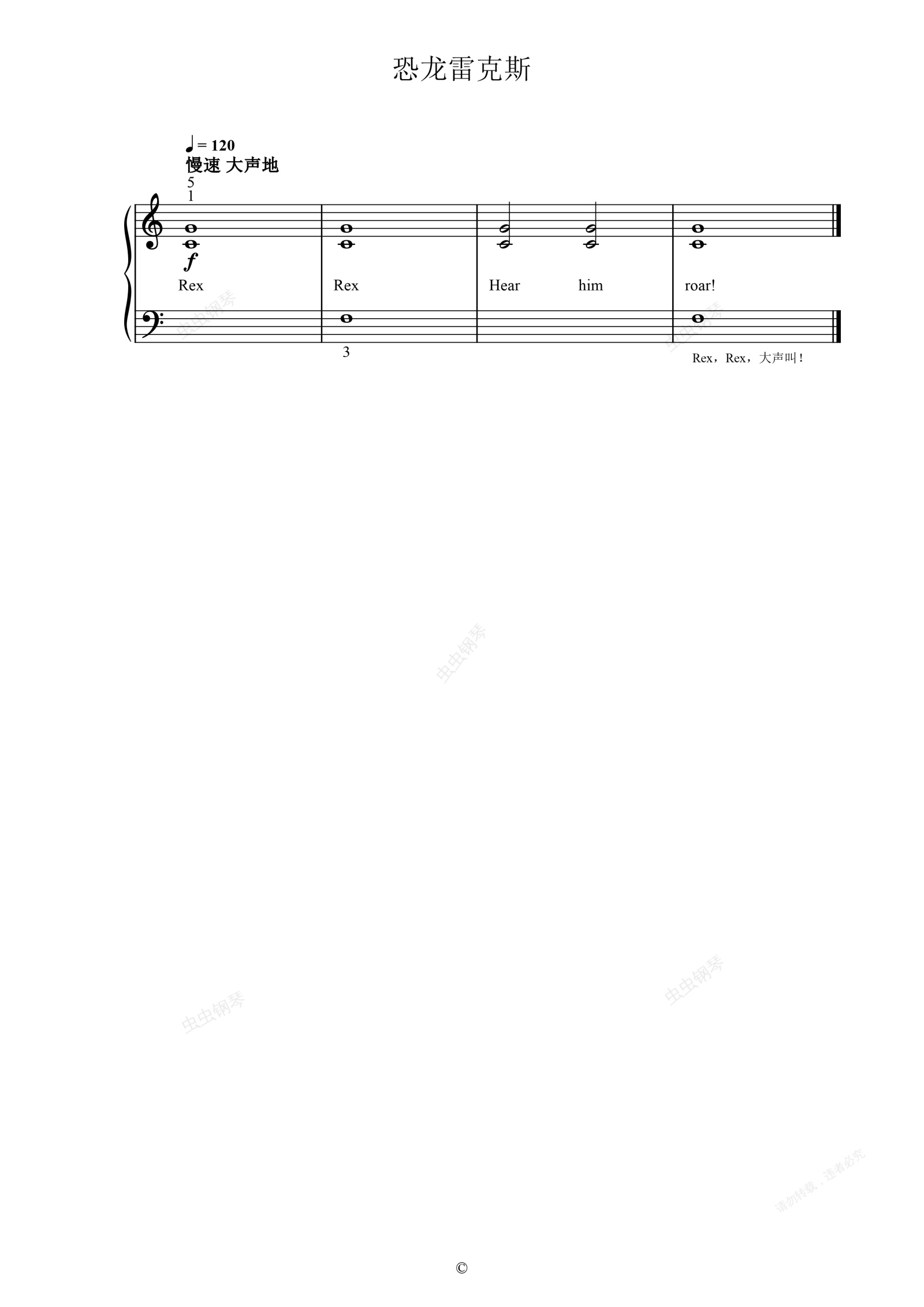 钢琴谱:单元四 恐龙雷克斯