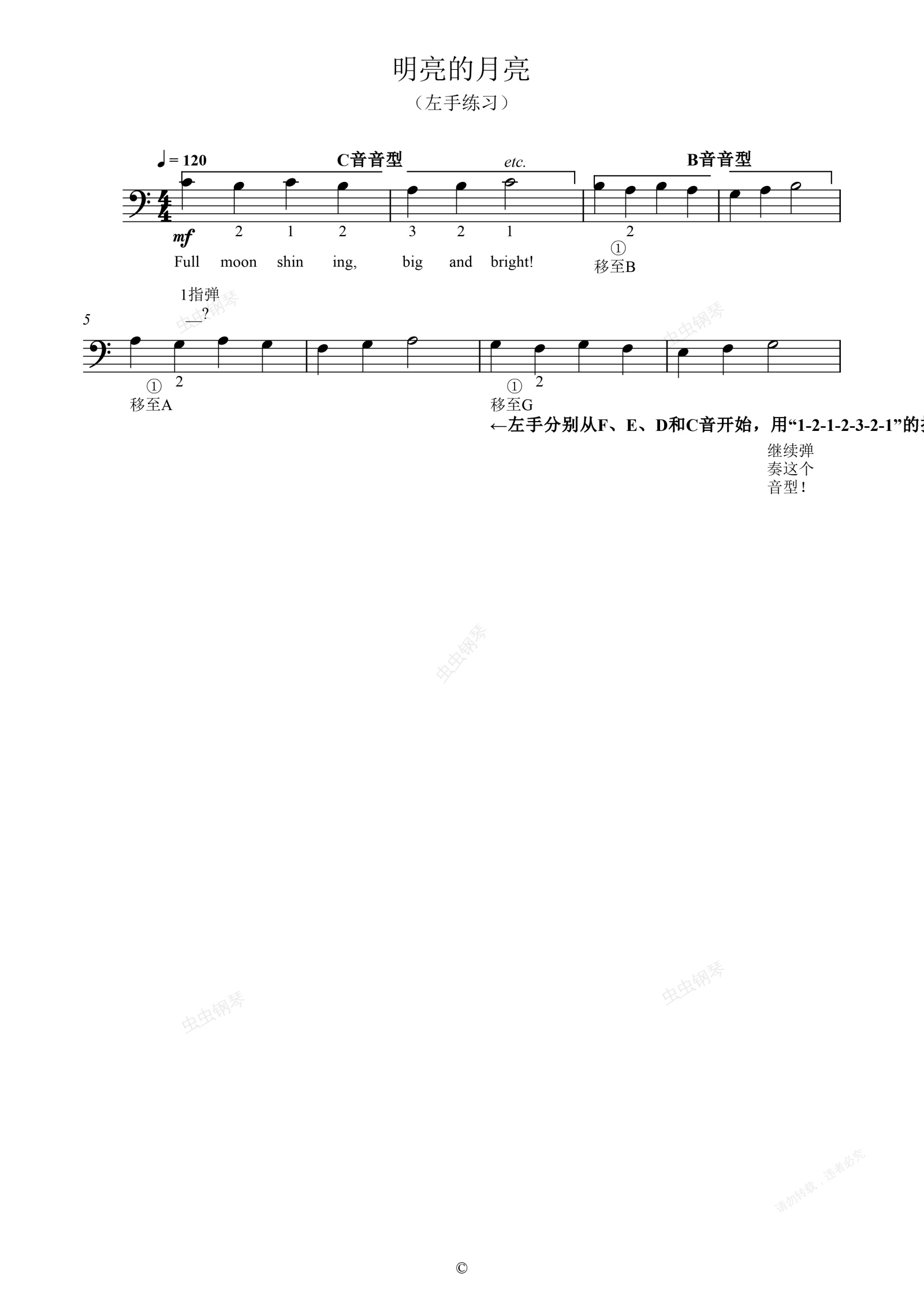 钢琴谱:单元六 明亮的月亮