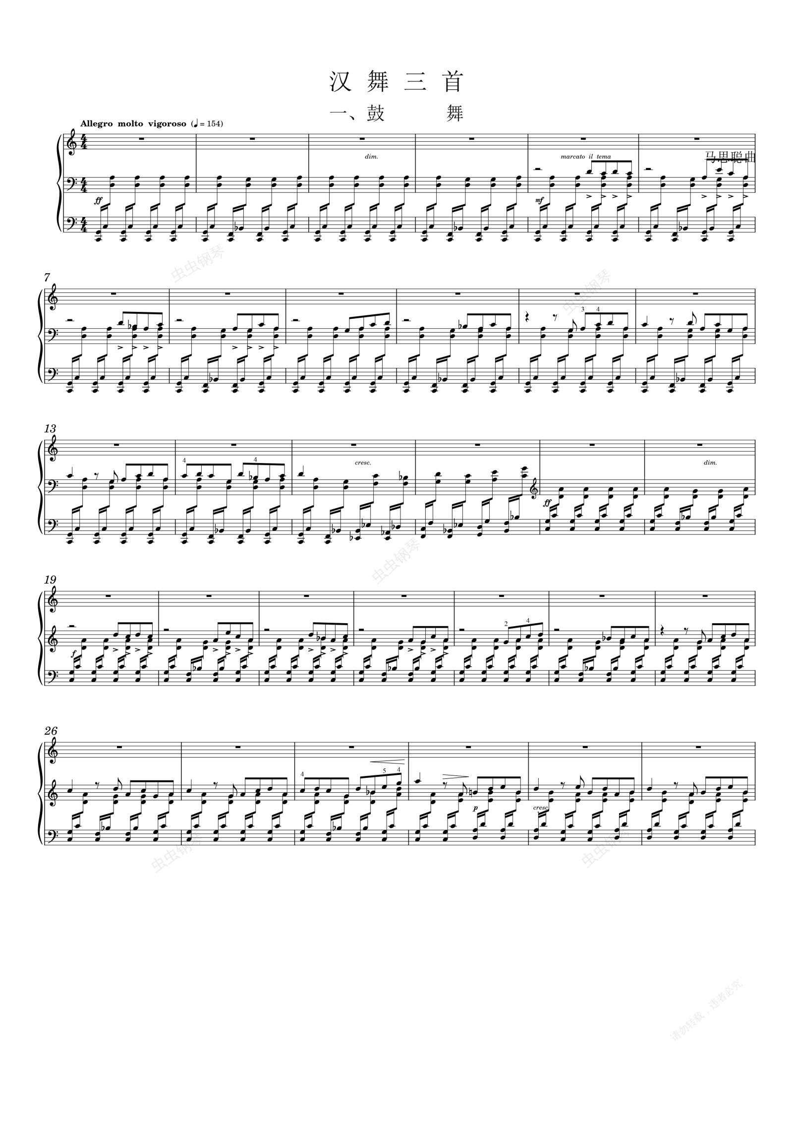 钢琴谱:汉舞三首 一、鼓舞