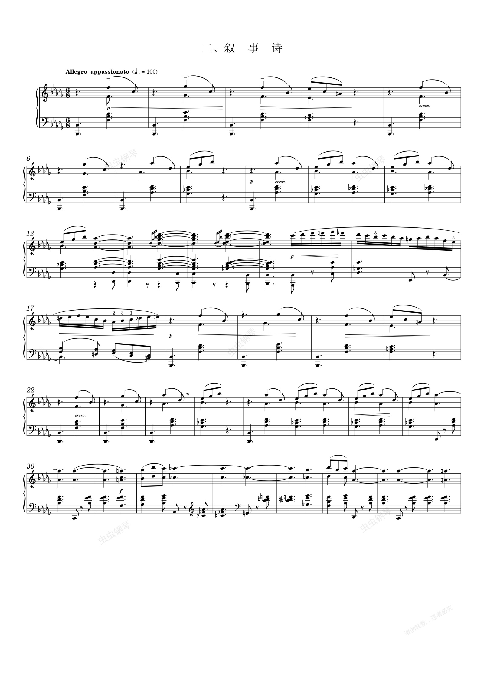 钢琴谱:降b小调第一钢琴奏鸣曲 二、叙事诗