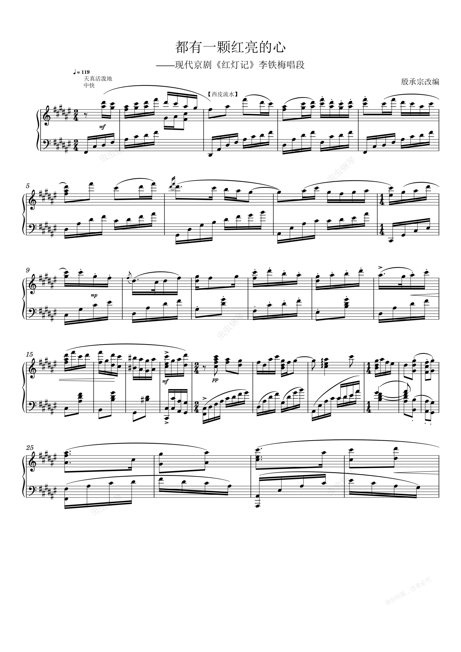 钢琴谱:都有一颗红亮的心——现代京剧《红灯记》李铁梅唱段