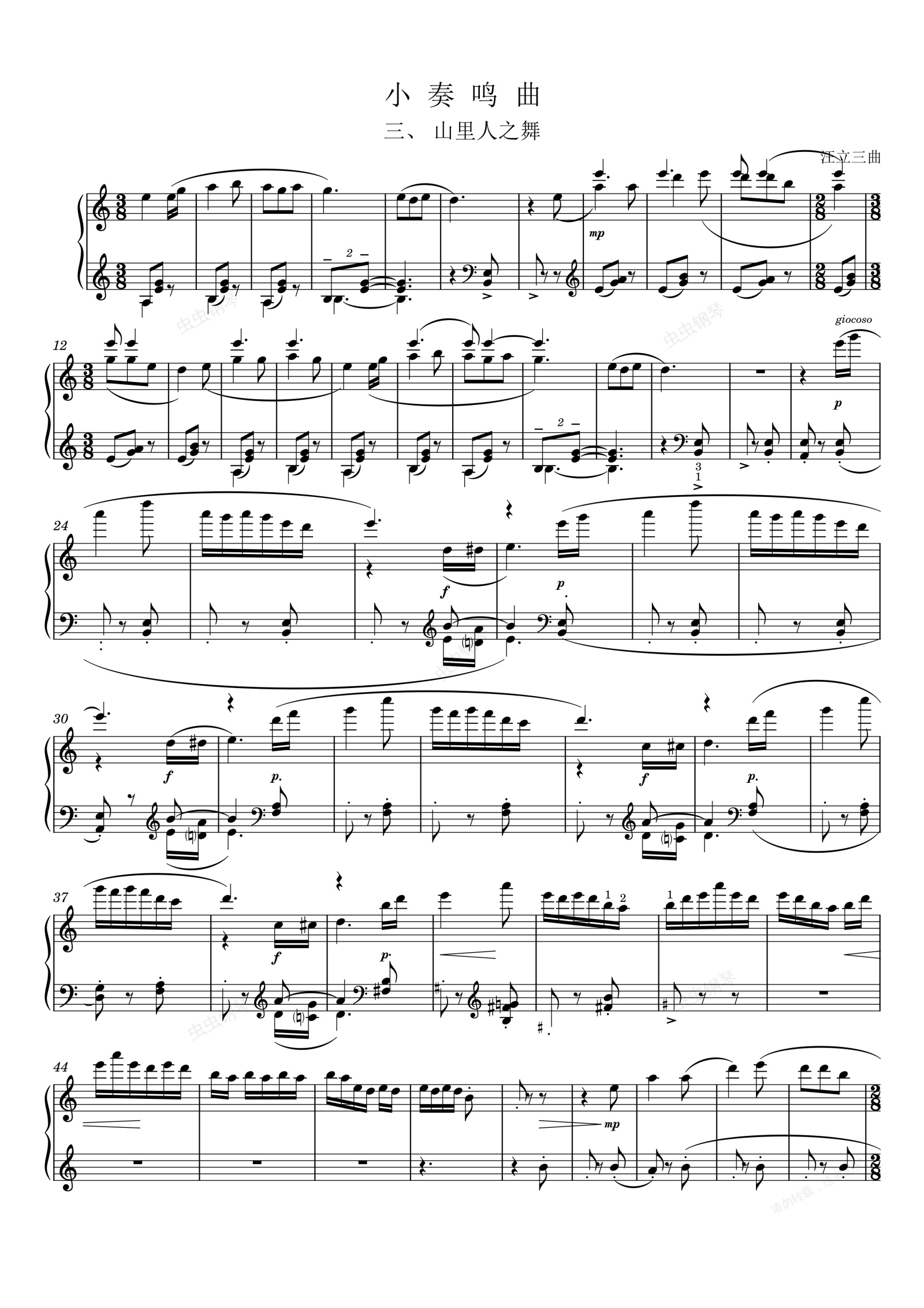 钢琴谱:小奏鸣曲 三、山里人之舞