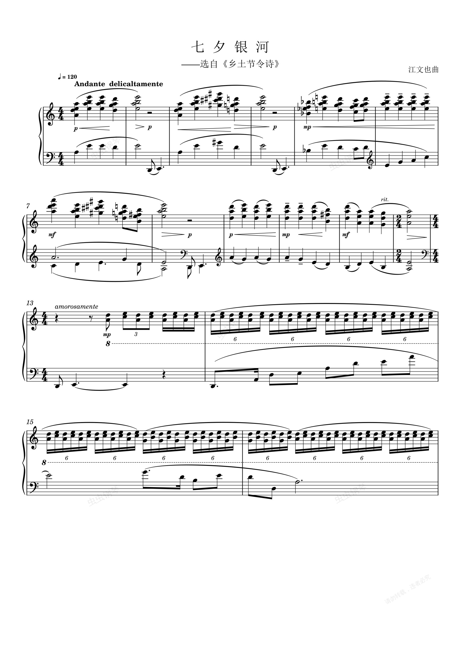 钢琴谱:七夕银河——选自《乡土节令诗》