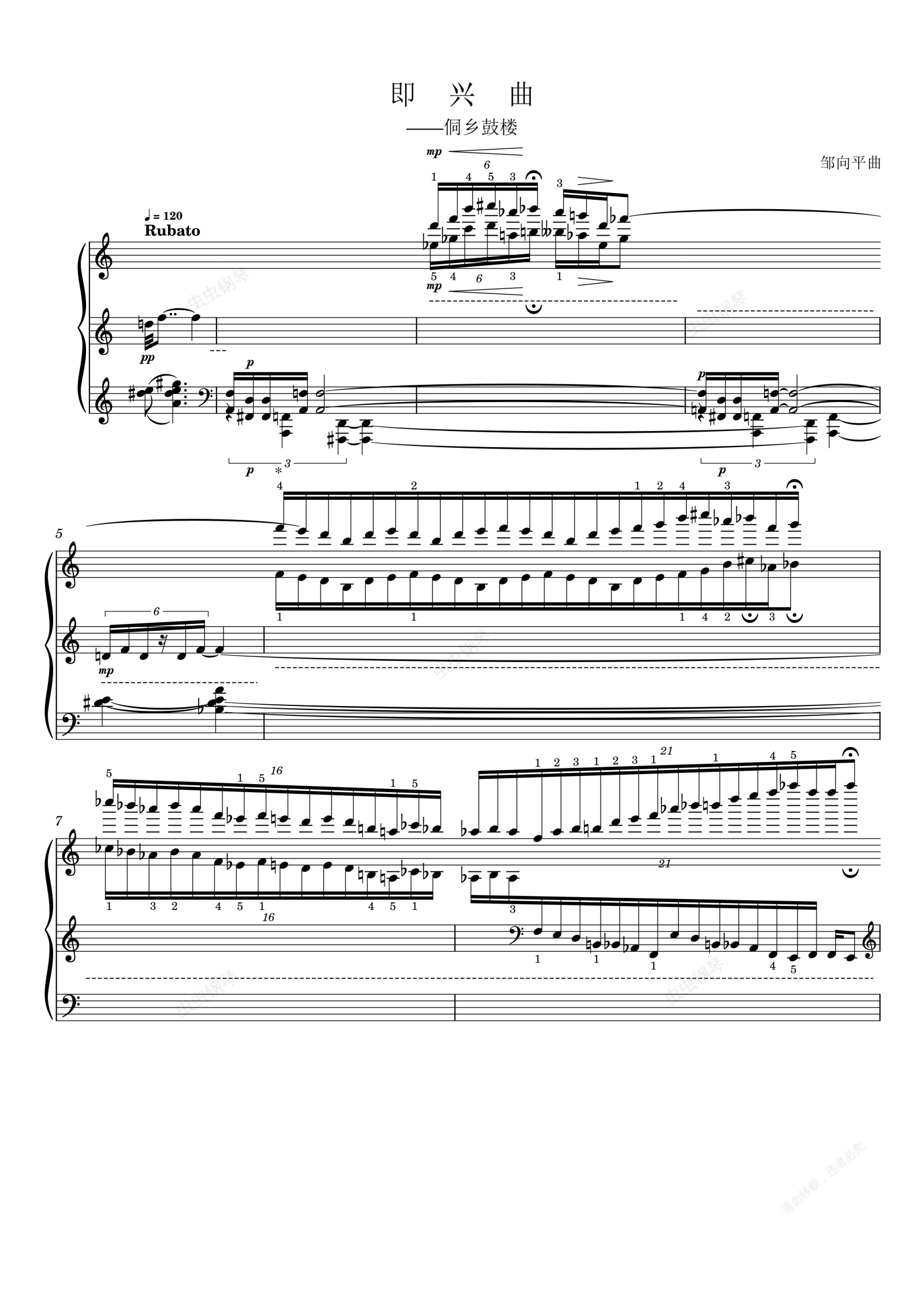 钢琴谱:即兴曲——侗乡鼓楼