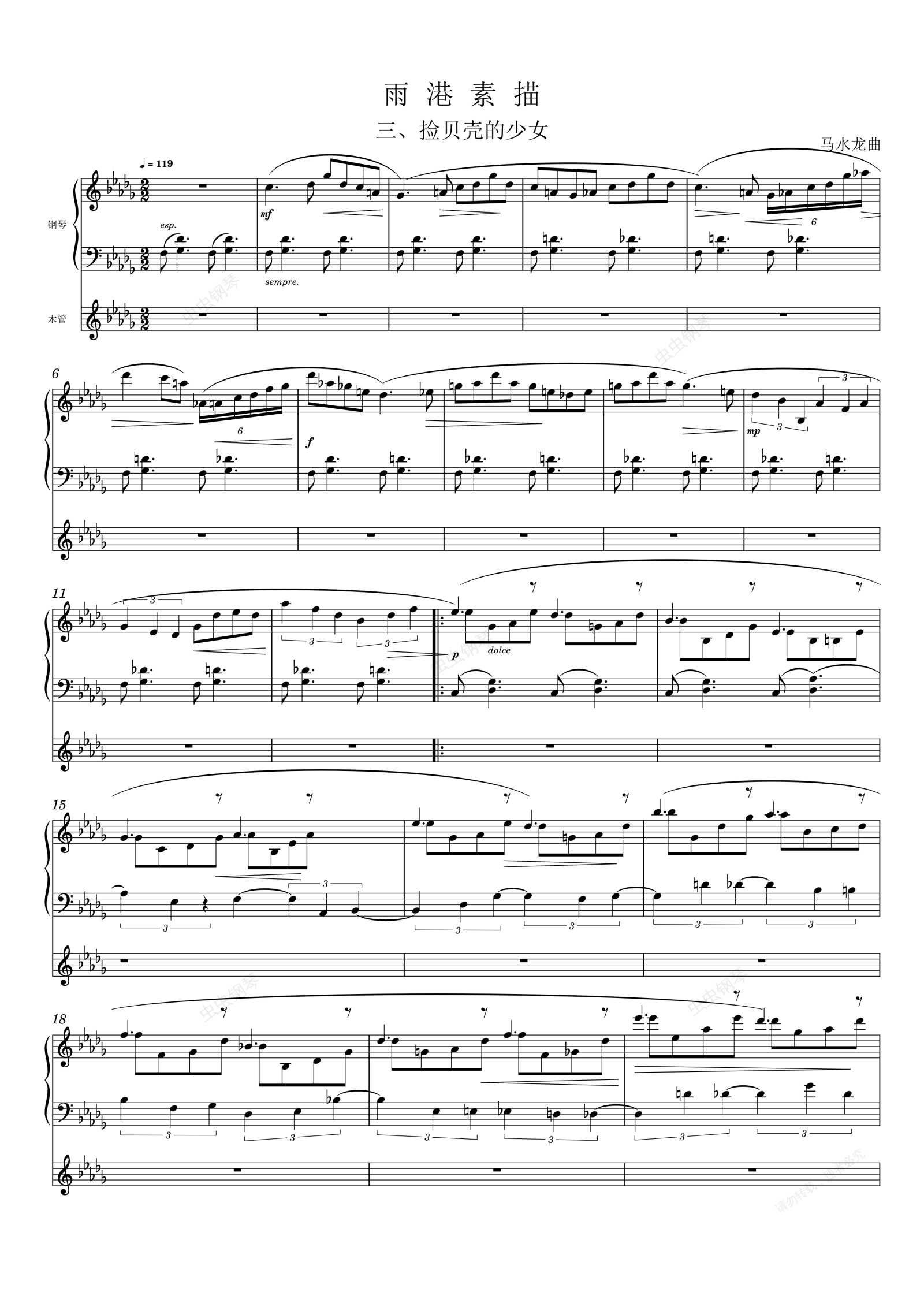 钢琴谱:渔港素描 三、捡贝壳的少女