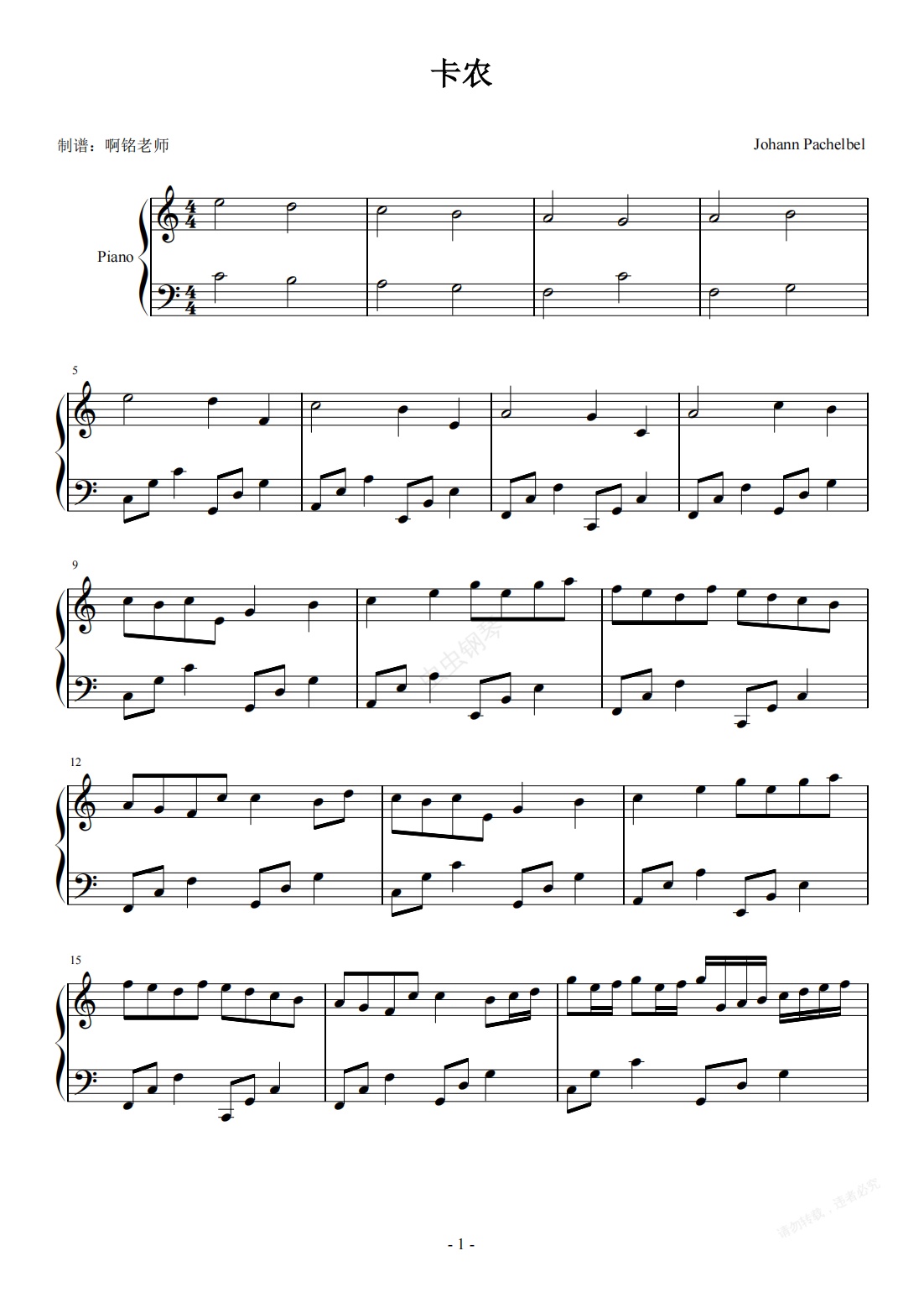 钢琴谱:卡农 【简易 二级版】