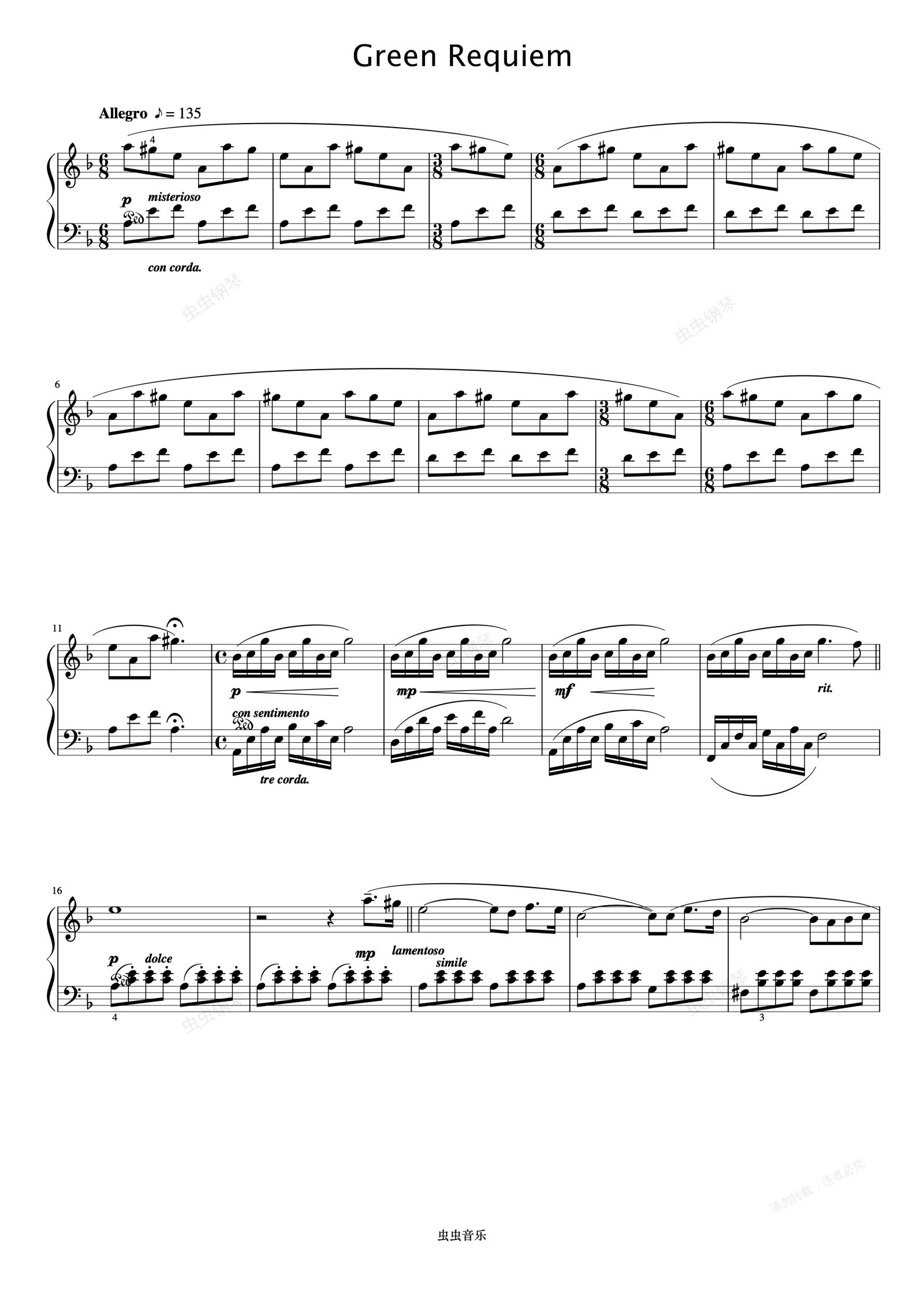 钢琴谱:Green Requiem《久石让钢琴作品精选集》