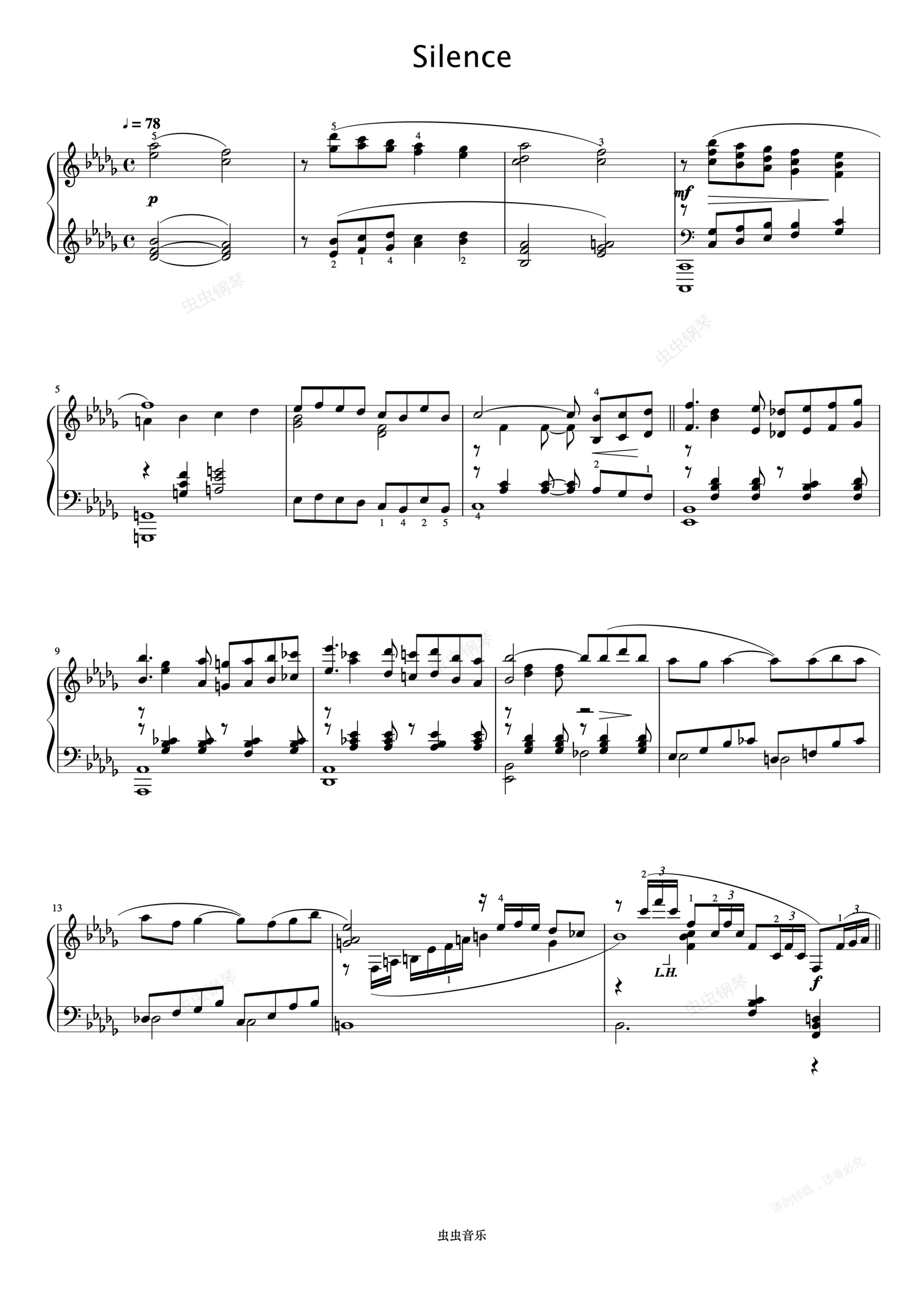 钢琴谱:Silence《久石让钢琴作品精选集》