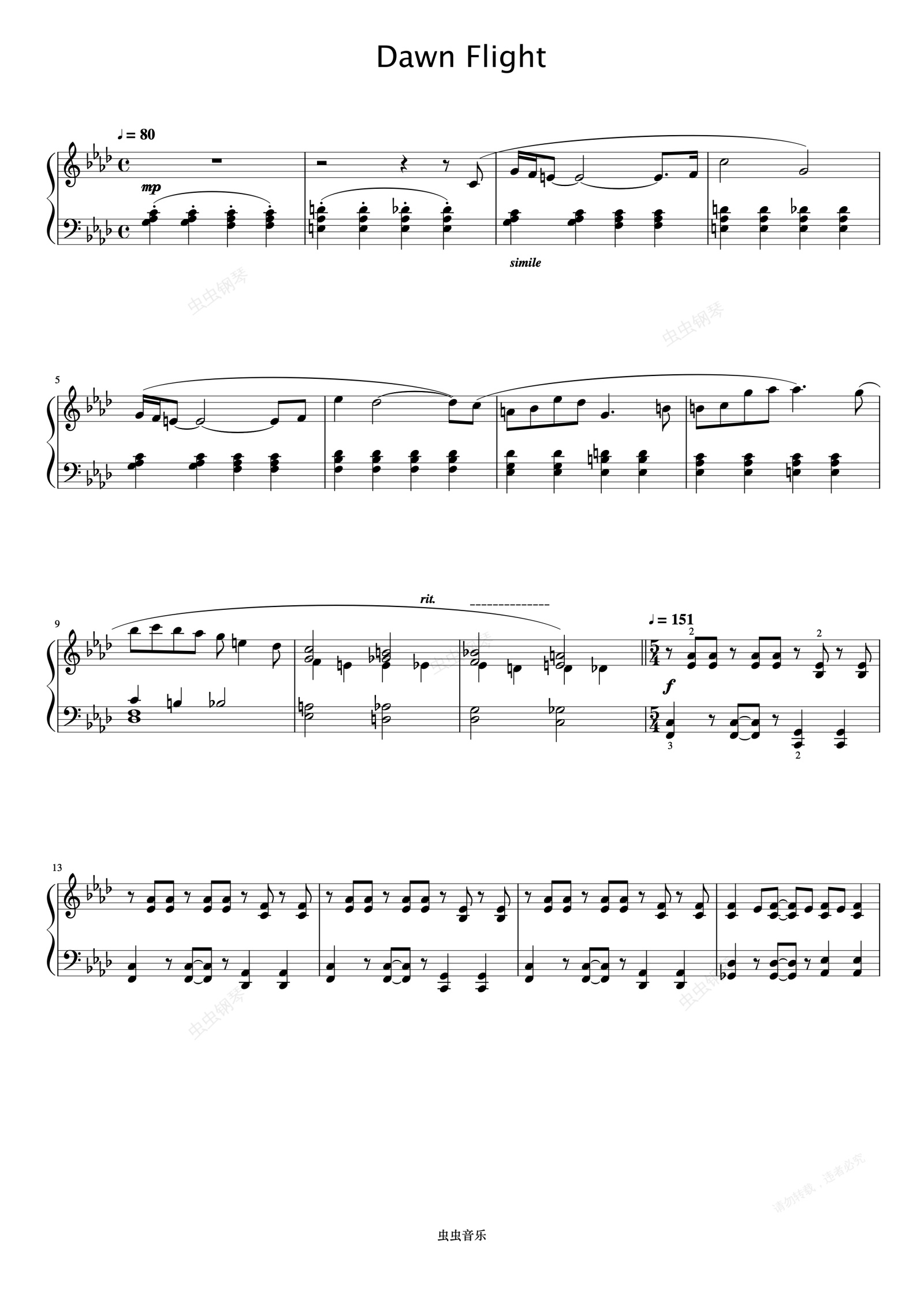 钢琴谱:Dawn Flight《久石让钢琴作品精选集》