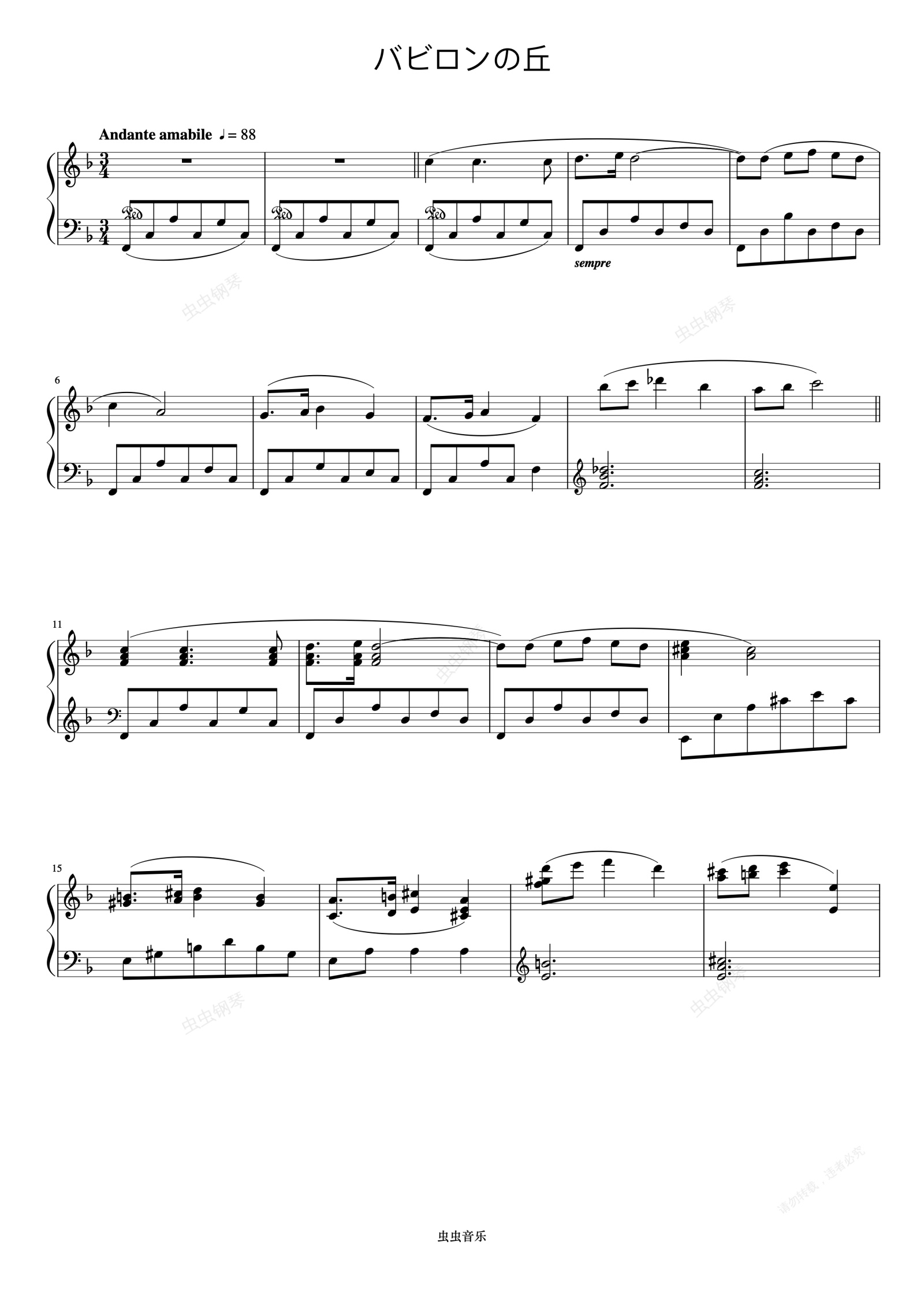 钢琴谱:バビロンの丘《久石让钢琴作品精选集》