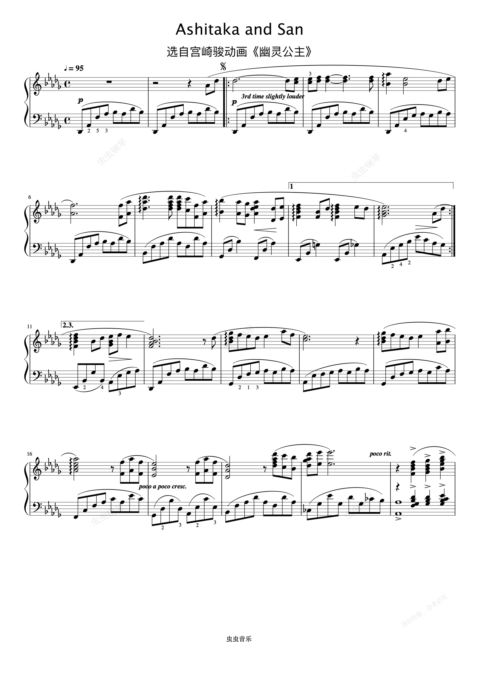 钢琴谱:Ashitaka and San《久石让钢琴作品精选集》