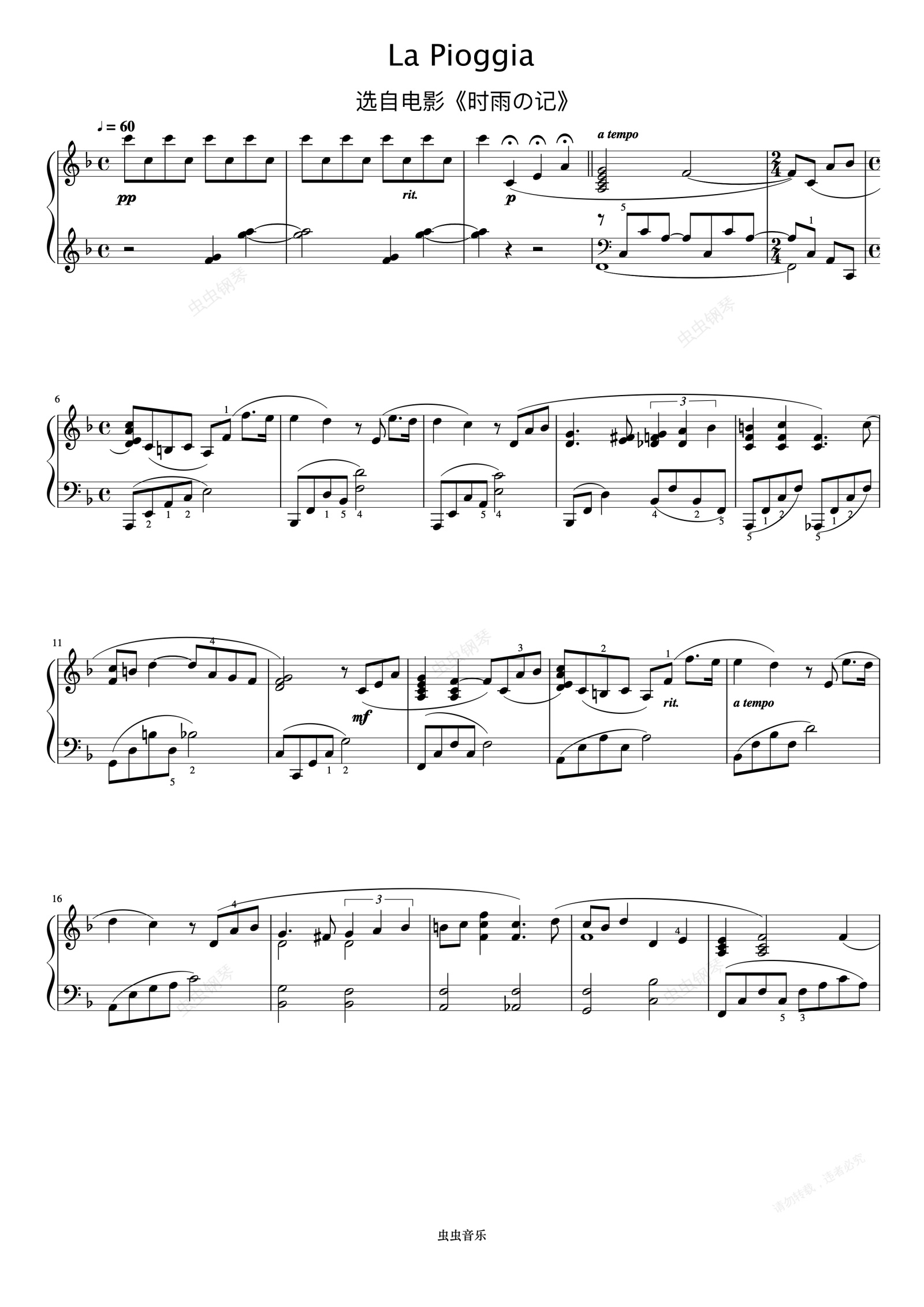 钢琴谱:La Pioggia《久石让钢琴作品精选集》