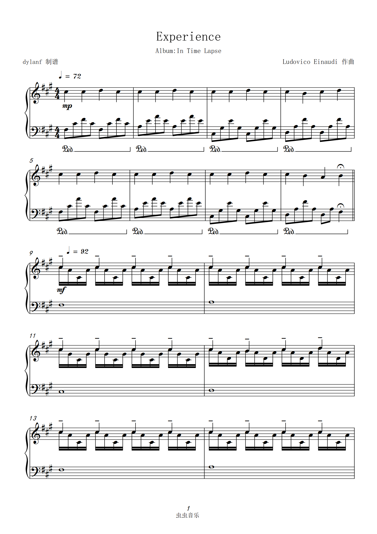 钢琴谱:Experience钢琴版《In A Time Lapse》
