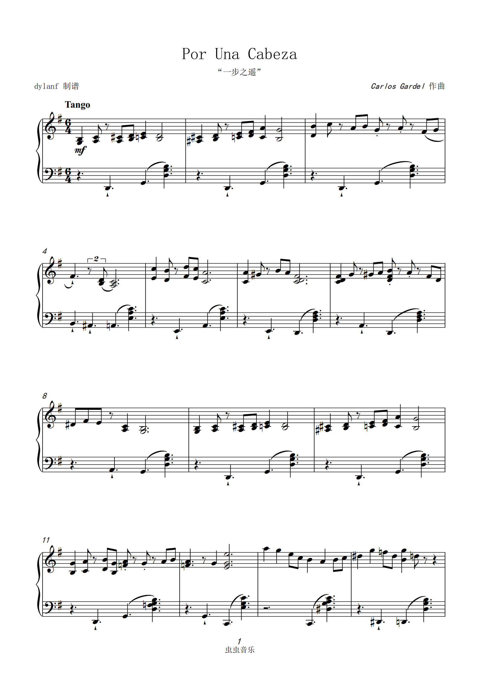 钢琴谱:一步之遥Por Una Cabeza《闻香识女人》Tango探戈舞曲