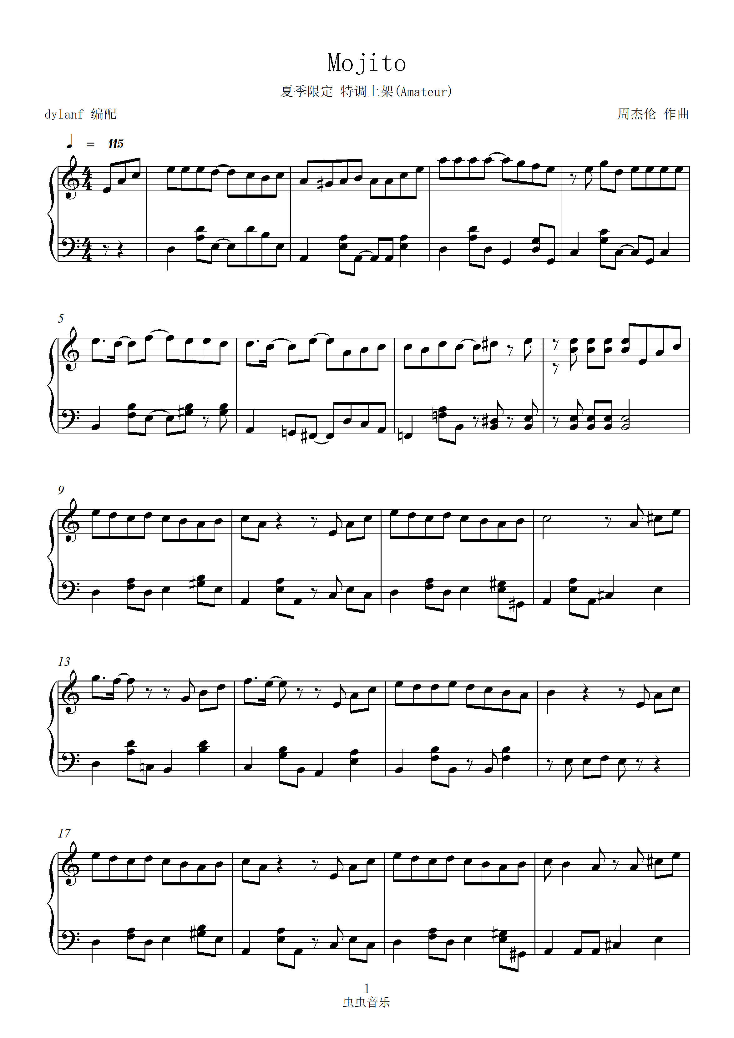 钢琴谱:易弹版Mojito周杰伦 好听还原 dylanf编配