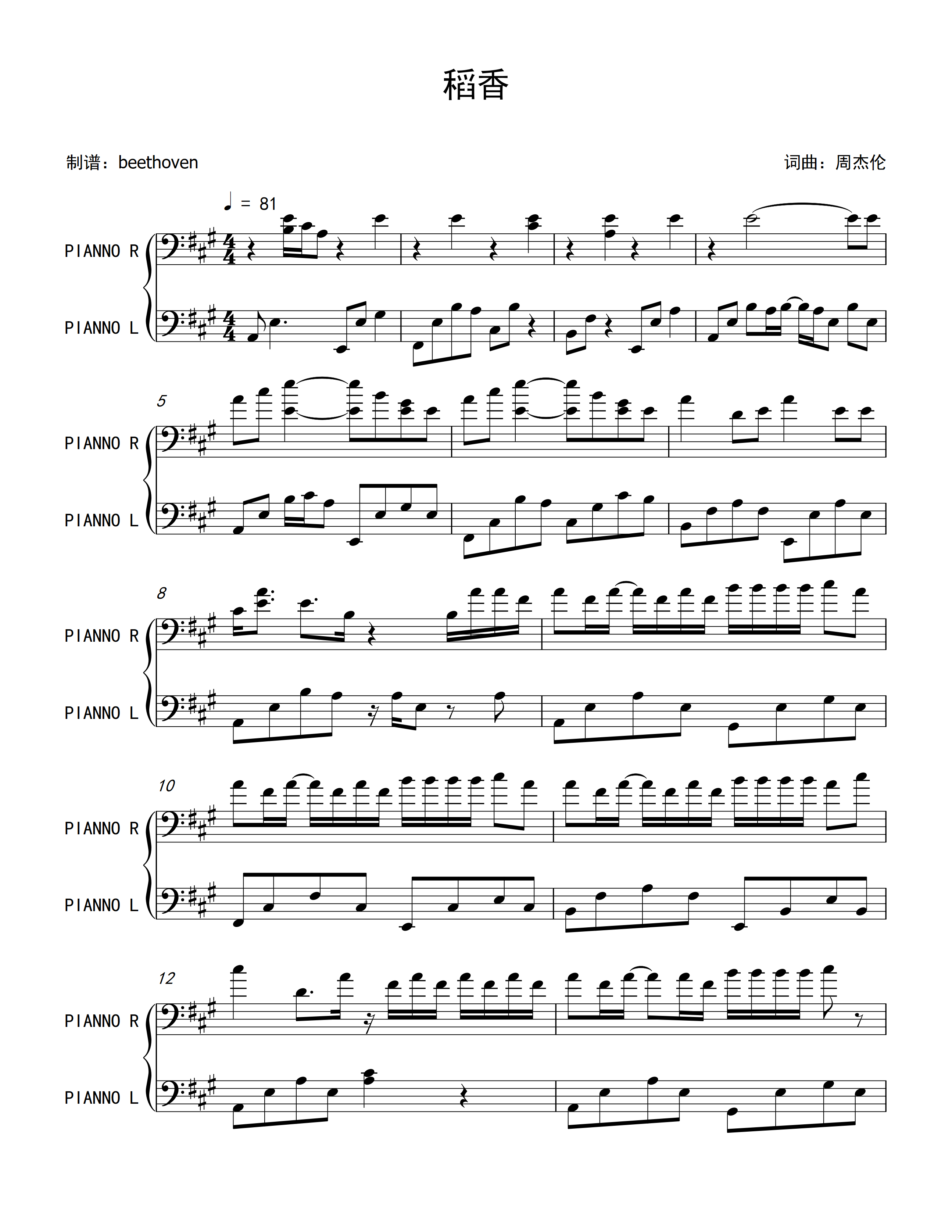 钢琴谱:《稻香》-周杰伦钢琴原版