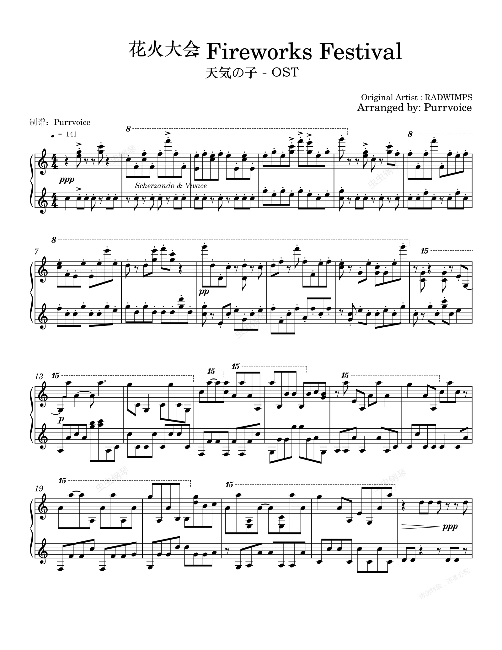 钢琴谱:花火大会 天气之子-ost 高清重置版