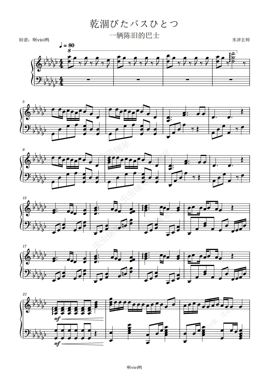 钢琴谱:乾涸びたバスひとつ
