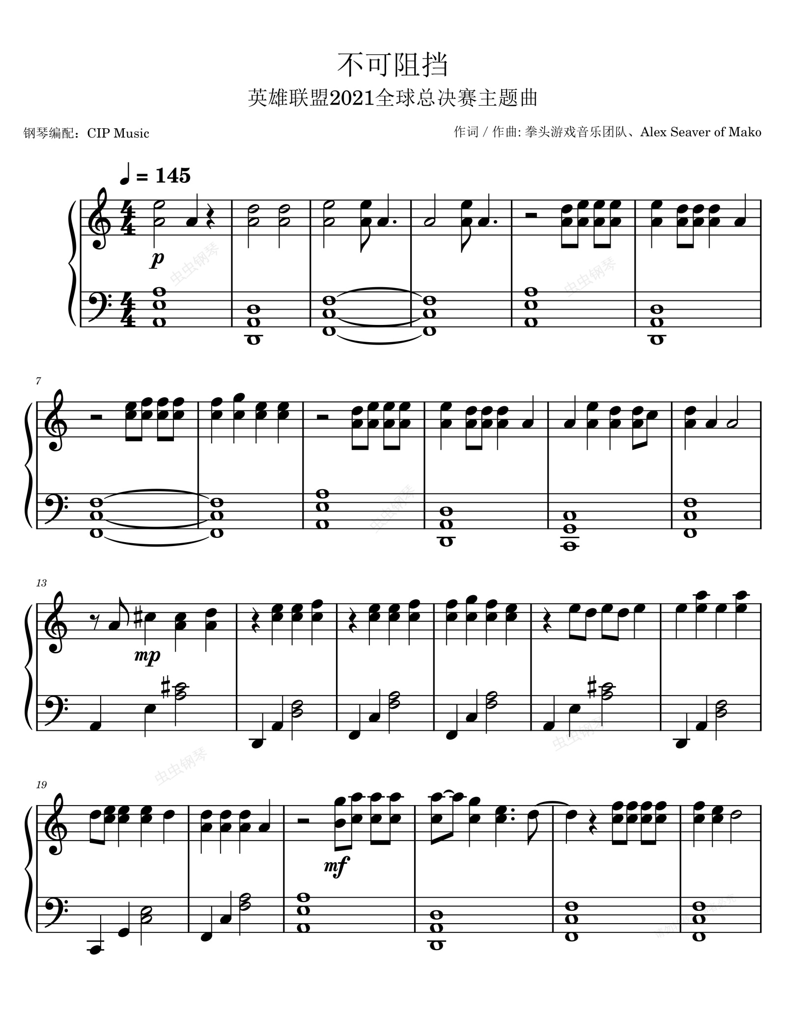 钢琴谱:《不可阻挡》英雄联盟2021全球总决赛主题曲