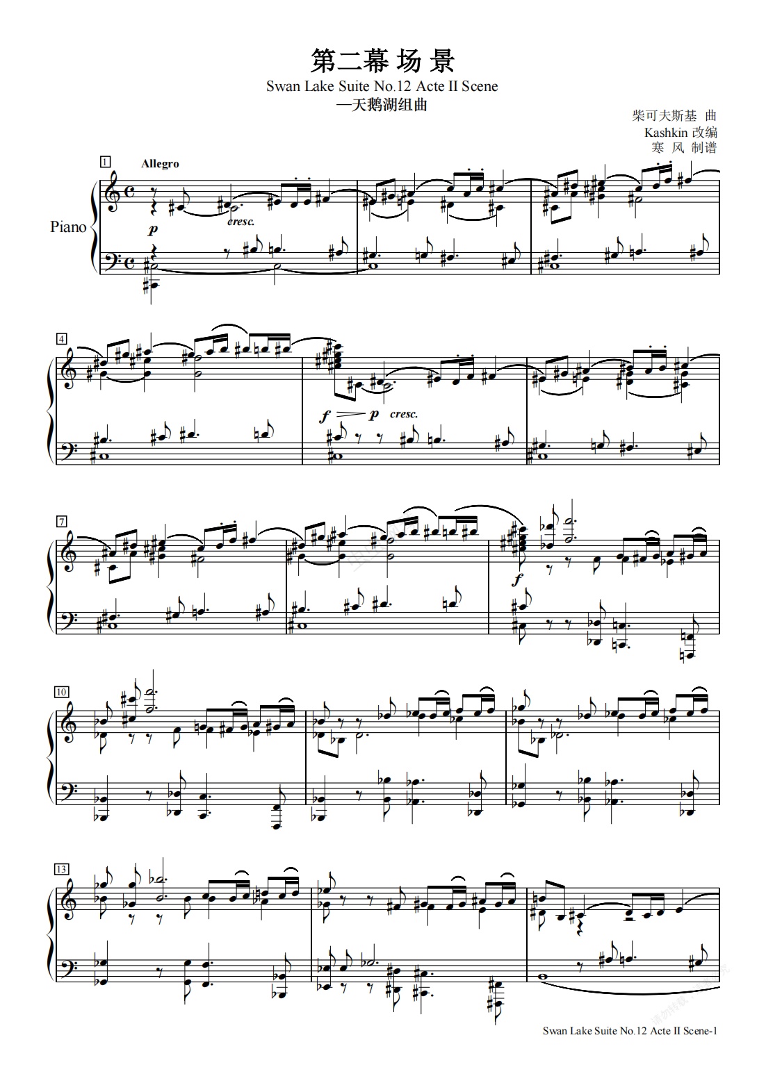 钢琴谱:天鹅湖组曲No.12-第二幕场景