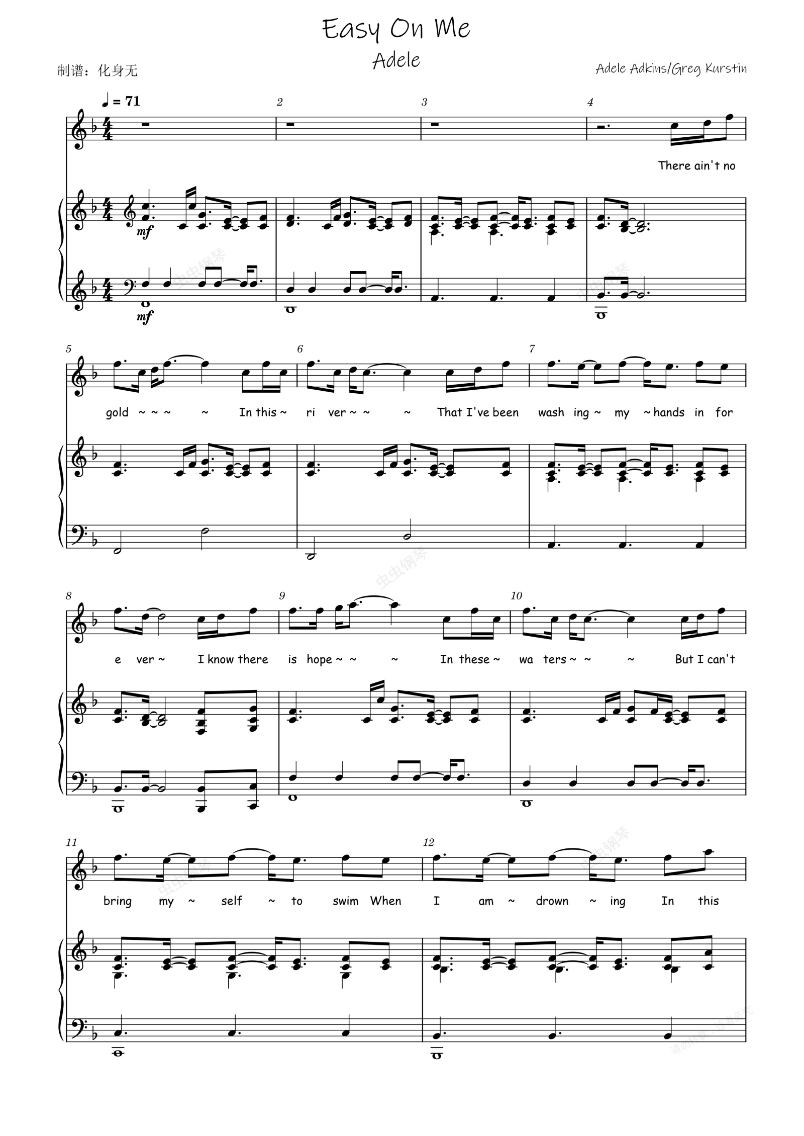 钢琴谱:Easy On Me (弹唱谱附歌词与歌词旋律)Adele