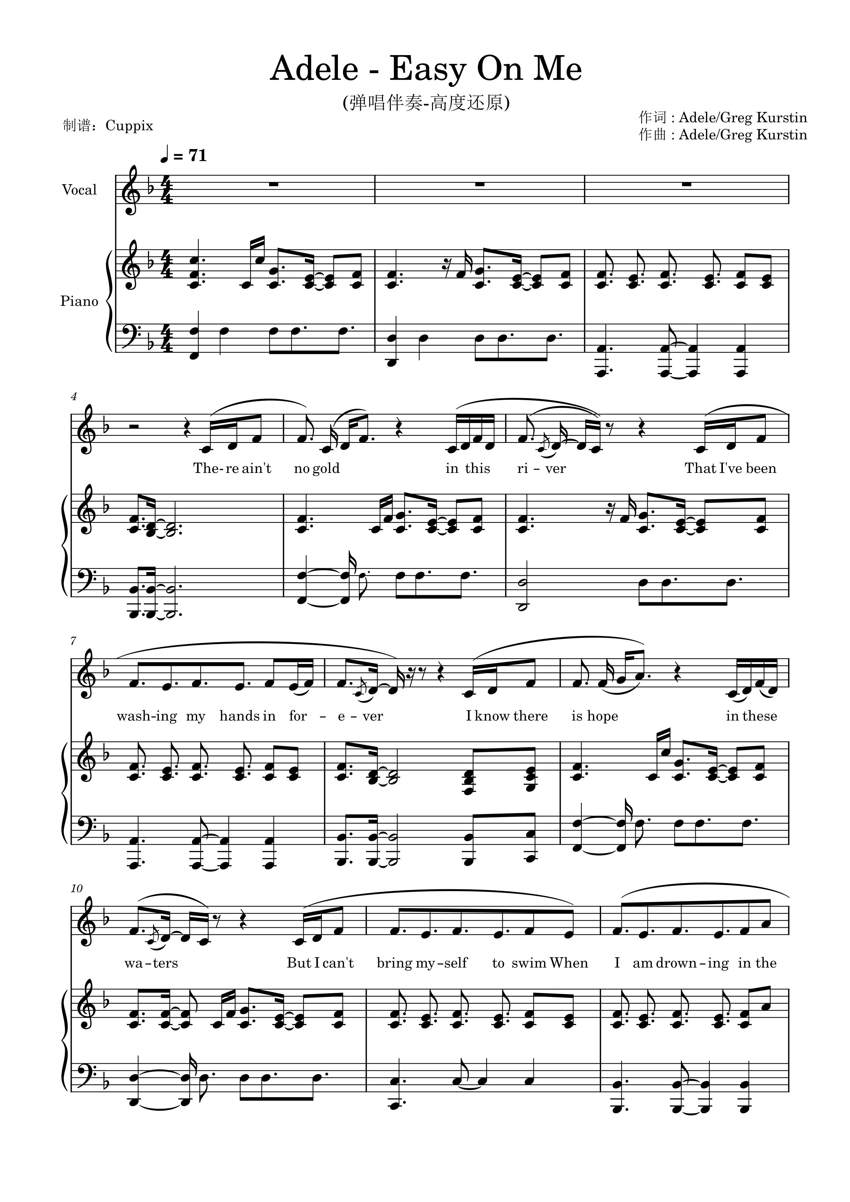 钢琴谱:Adele《Easy On Me》弹唱伴奏附词-高度还原