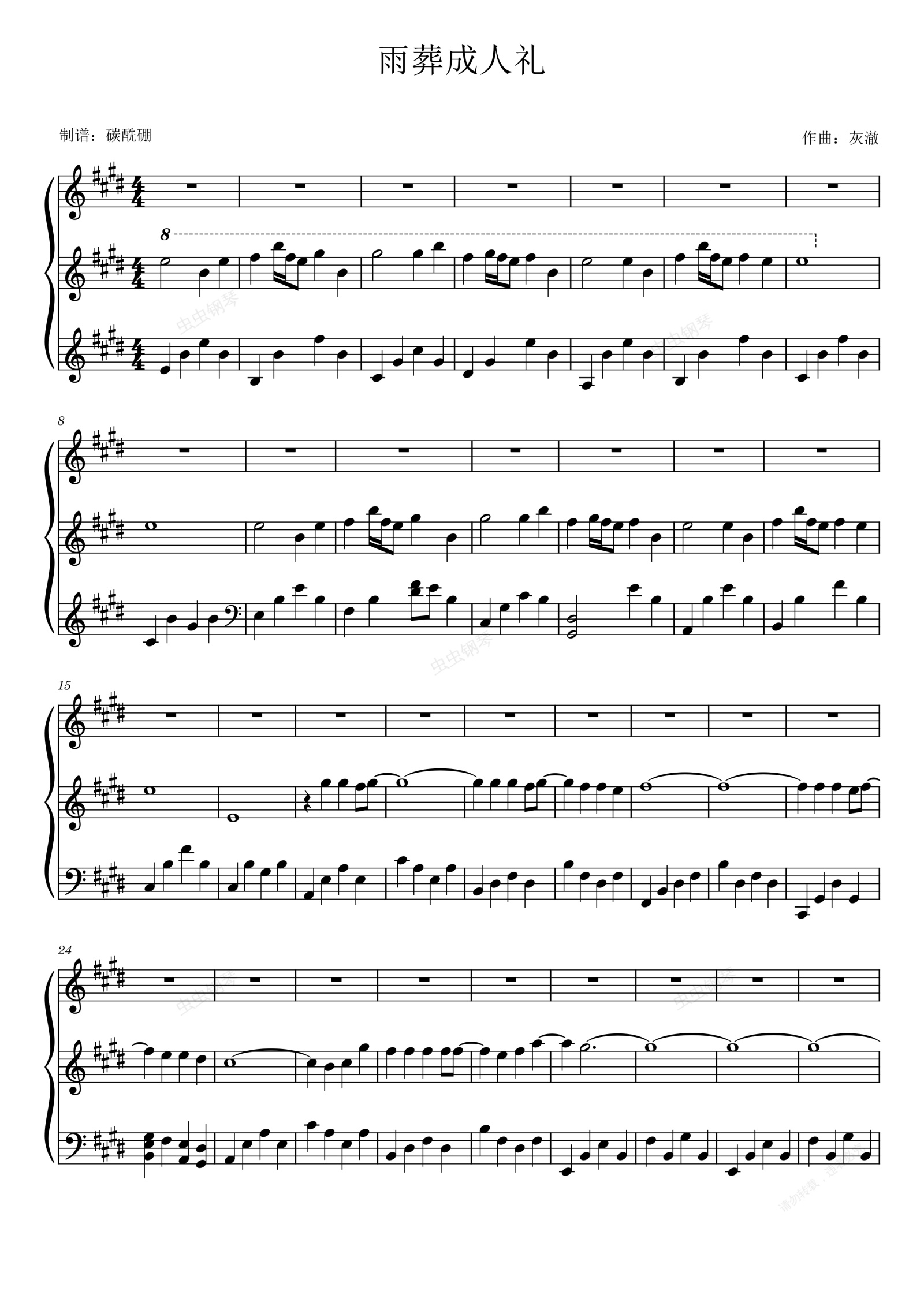 钢琴谱:灰澈-雨葬成人礼