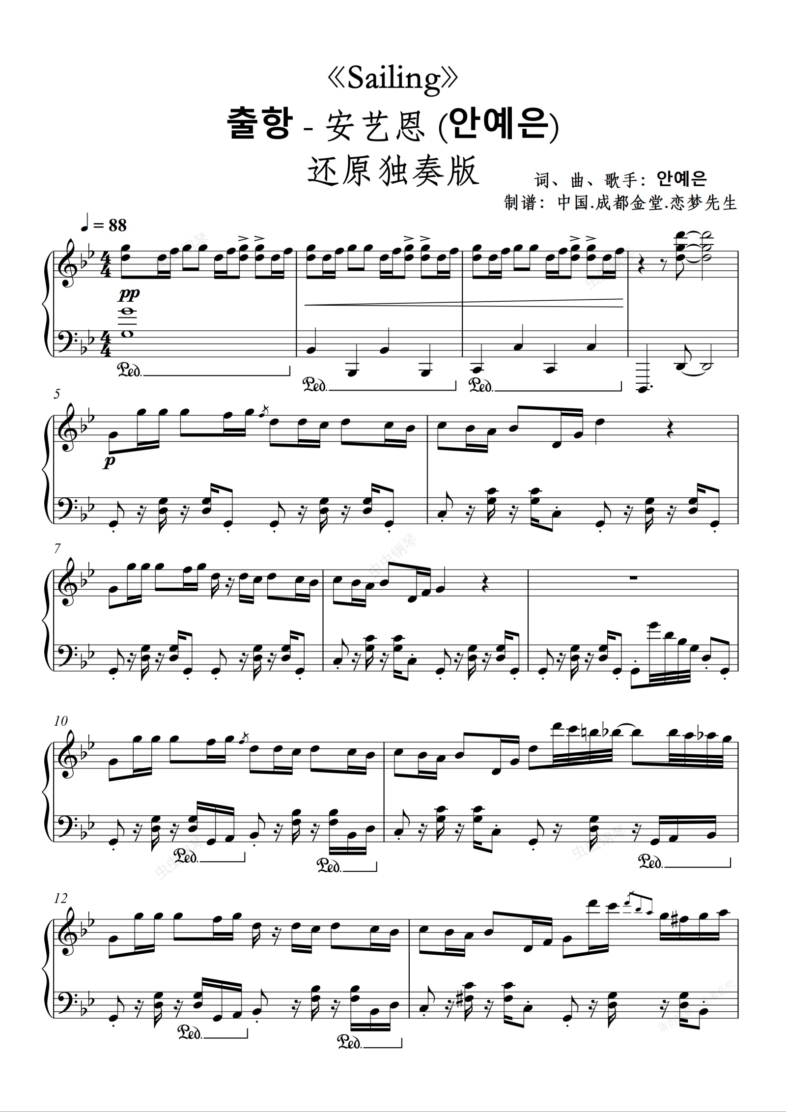 钢琴谱:《Sailing》安艺恩 (안예은)-抖音热门歌曲-还原独奏版