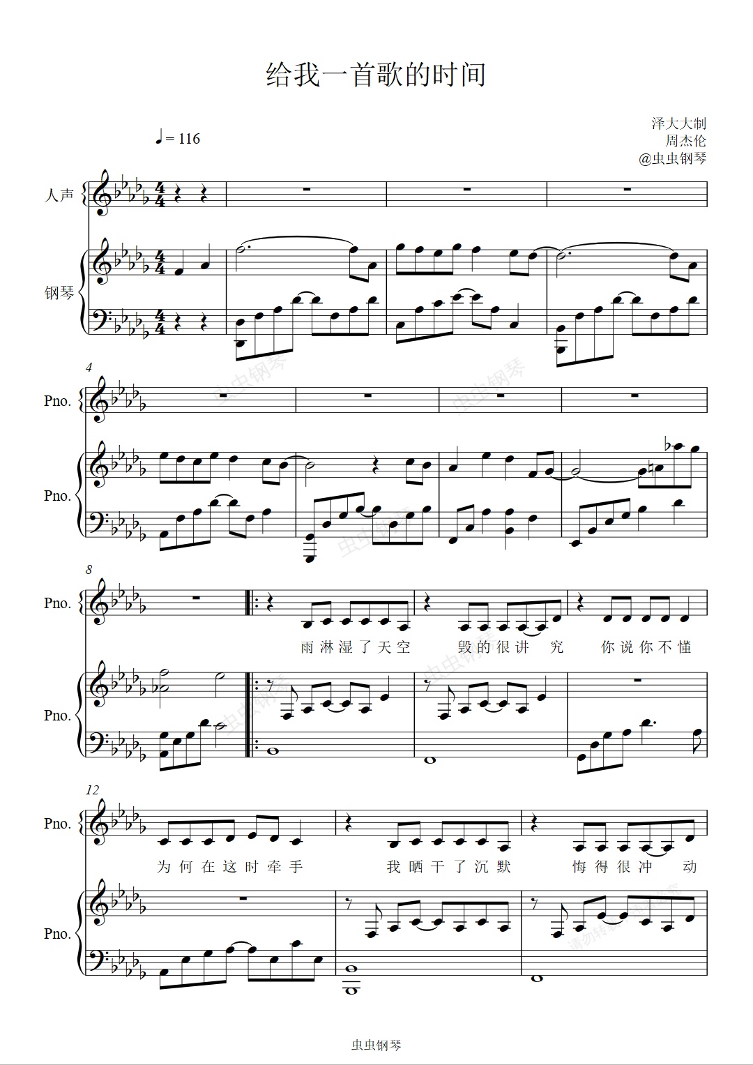 钢琴谱:给我一首歌的时间【原版弹唱附词】泽大大 周杰伦