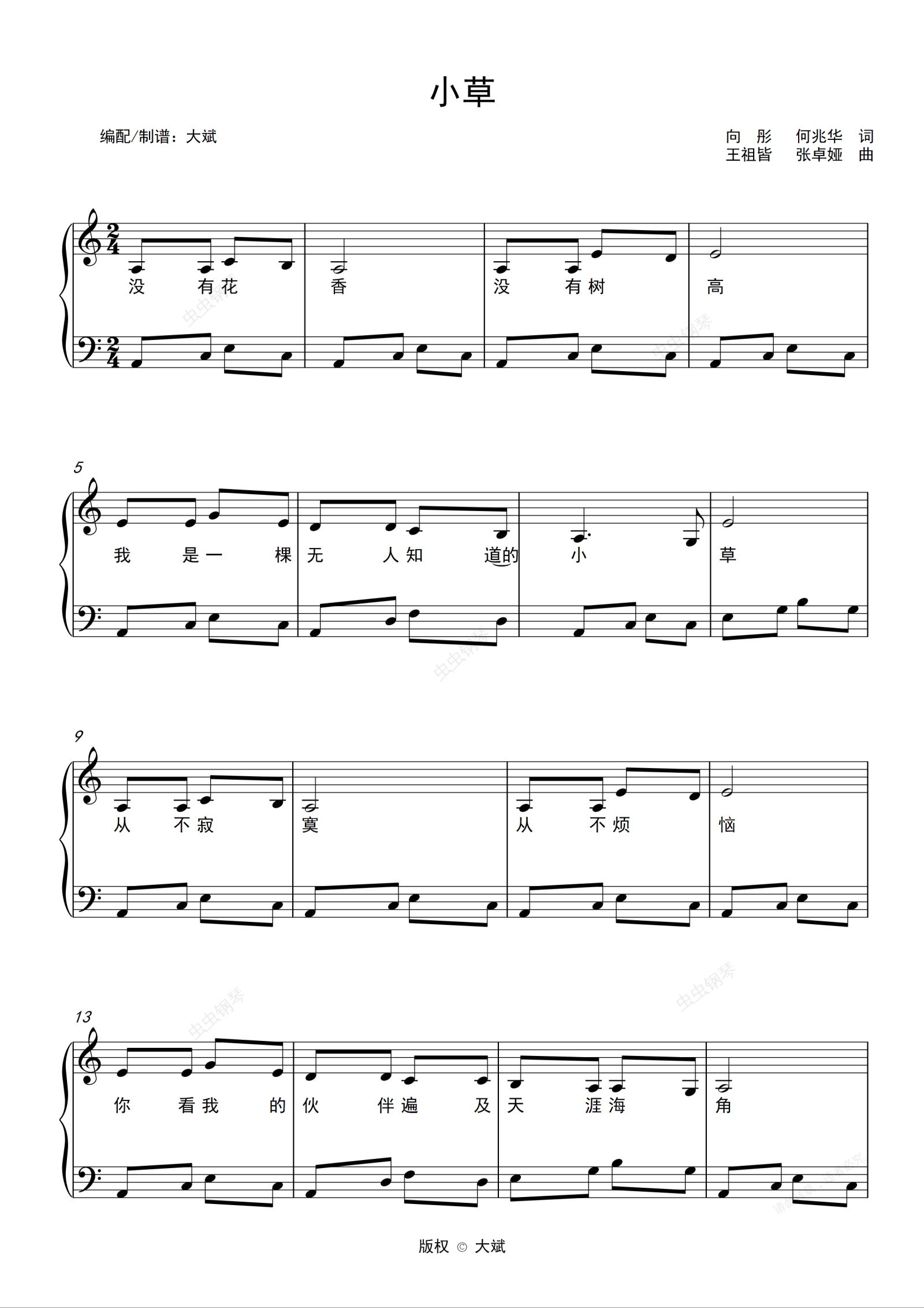钢琴谱:小草 -儿歌
