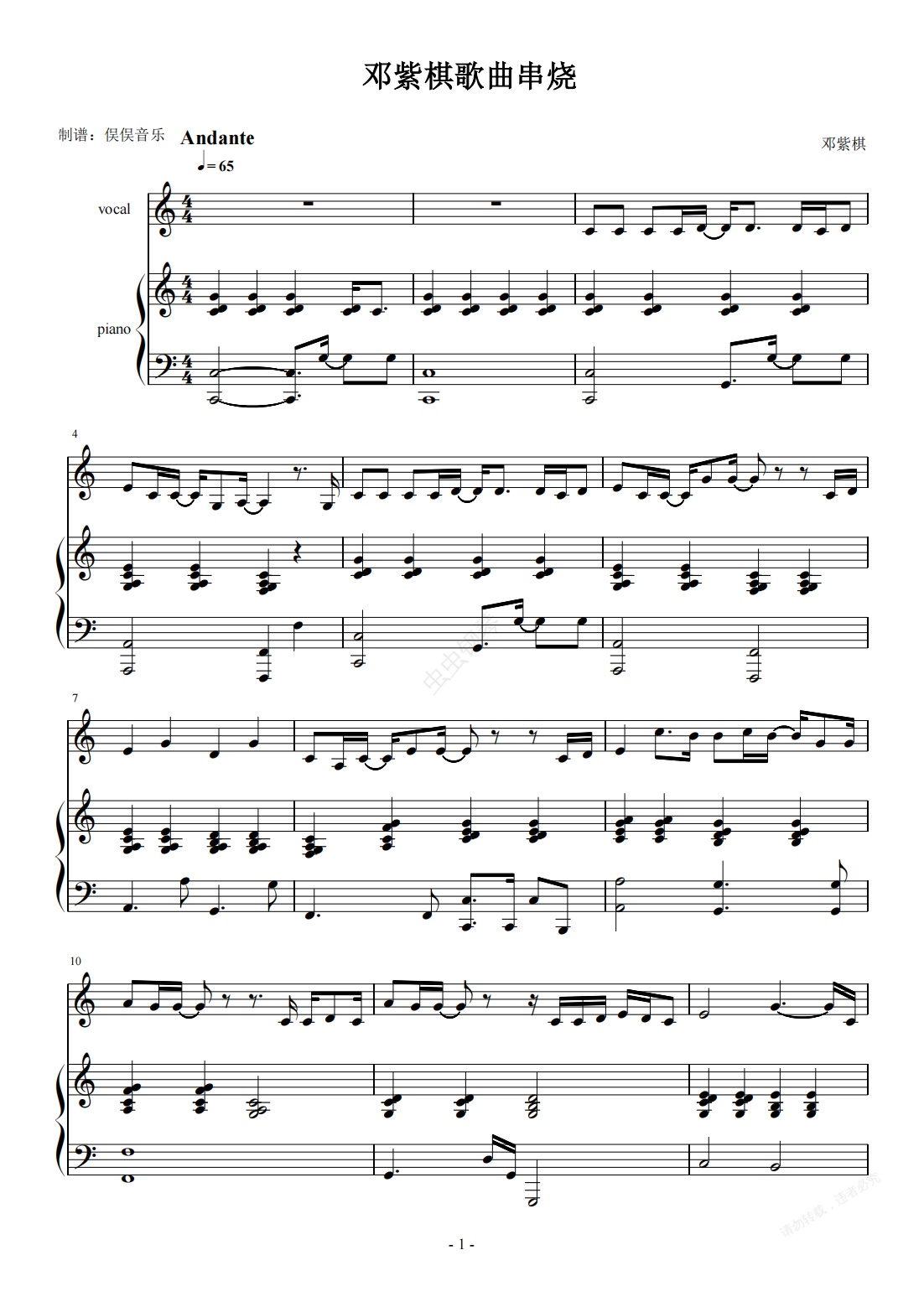 钢琴谱:邓紫棋演唱会歌曲串烧